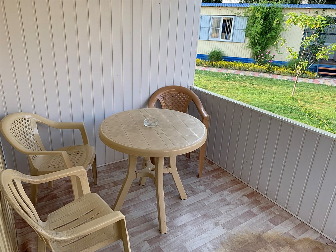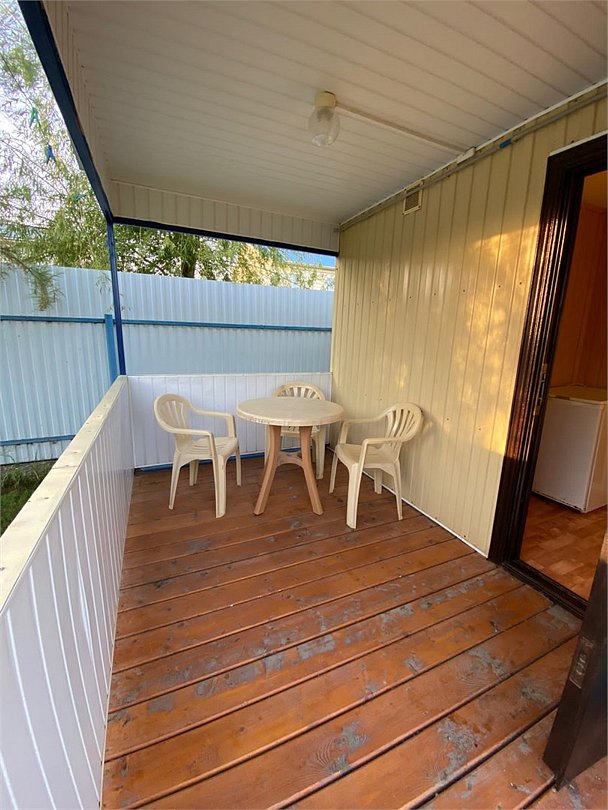 Телевизор, холодильник, сплит, с/у (душ, раковина, унитаз) две односпальные кровати или одна двуспальная, тумбочка прикроватная, стол, стулья, шкаф, багажная полка. Комплект садовой мебели на веранде.