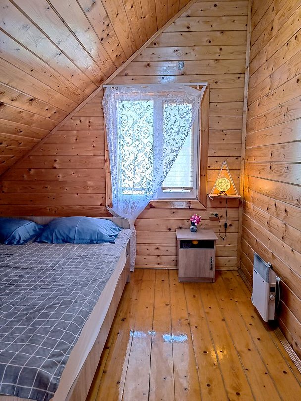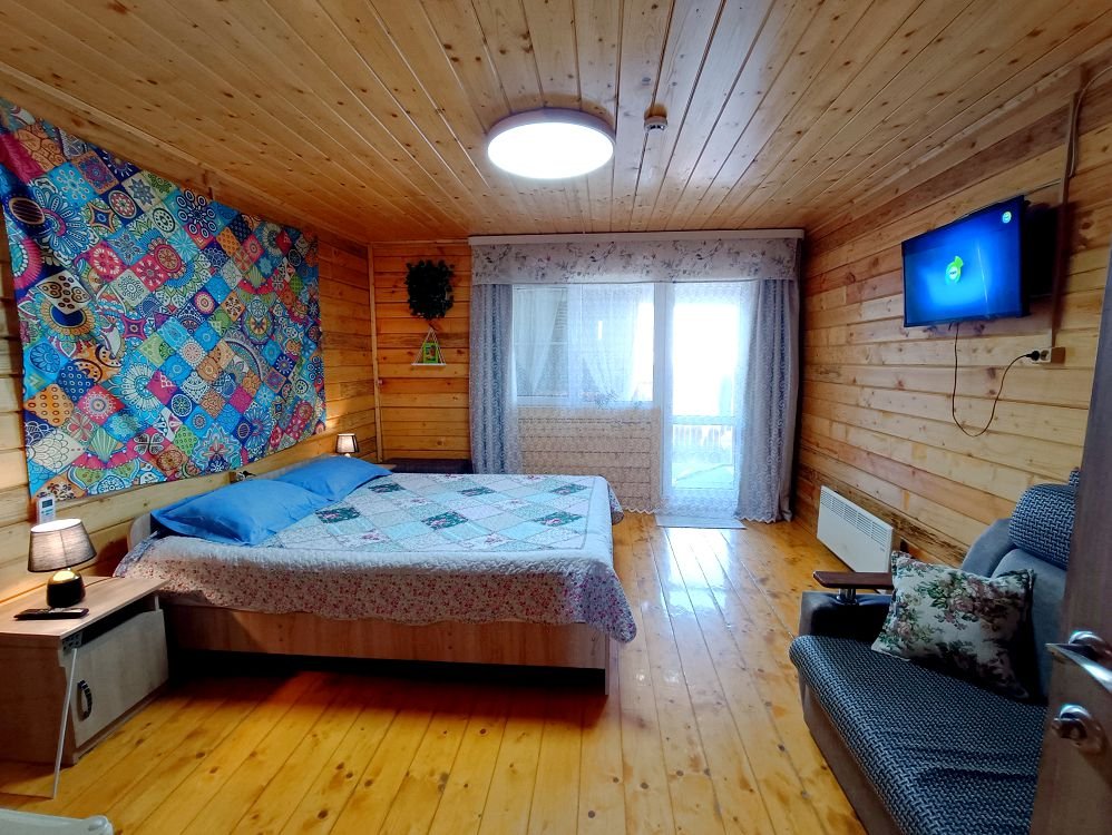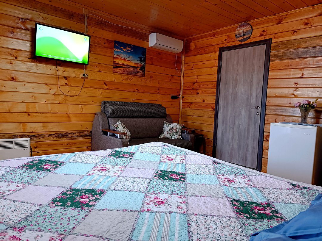 Номер в эко-доме под ключ рассчитан на проживание до 2 основных гостей и дополнительно до 2 благодаря наличию дивана.