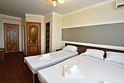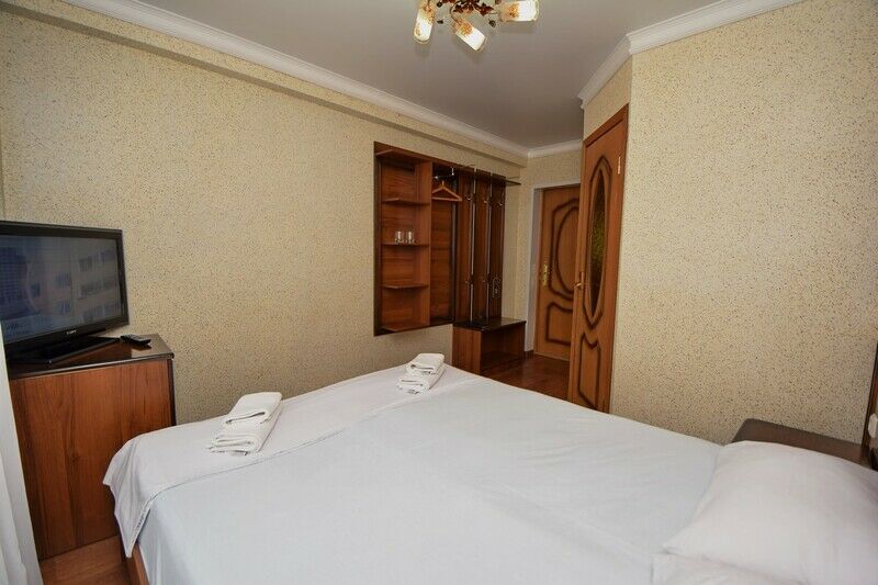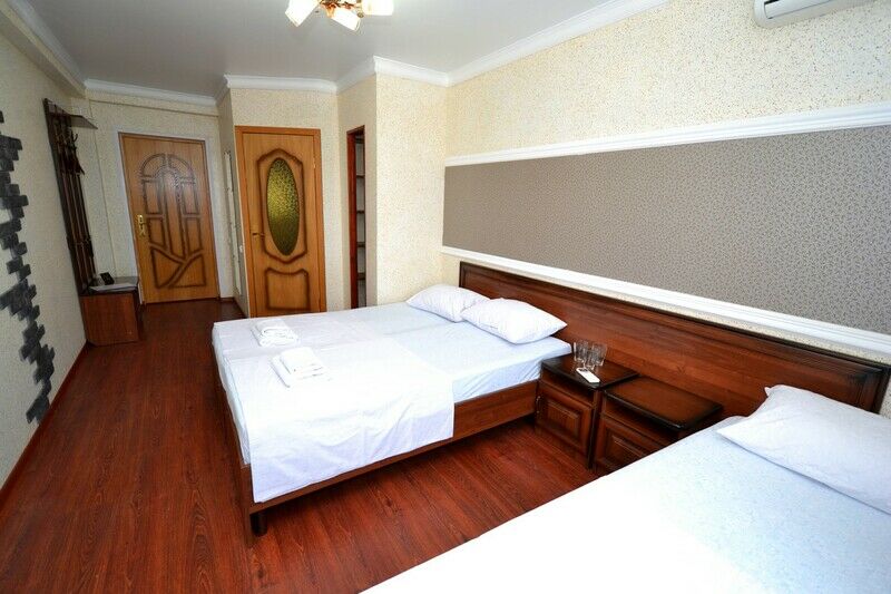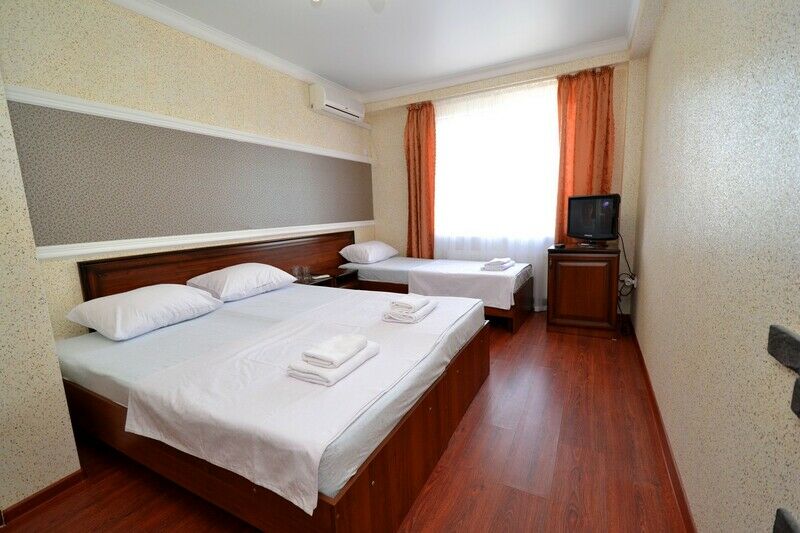 Номера оформлены в светлых тонах и оснащены кондиционером, удобными кроватями, телевизором, а также собственной ванной комнатой.