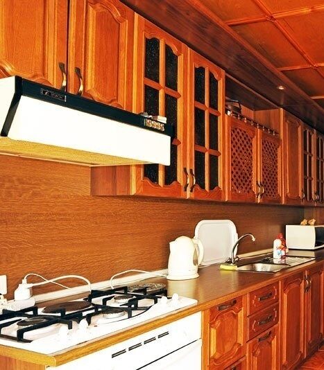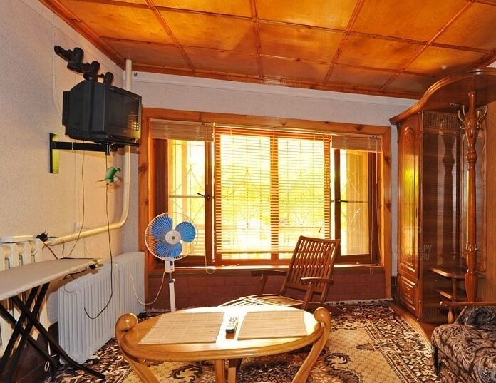 Большой холл-кухня, две спальные комнаты (в одной комнате двуспальная кровать, в другой кровати и диван-кровать), разделенный санузел, кладовка. В каждой комнате установлена сплит-система, есть спутниковое телевидение