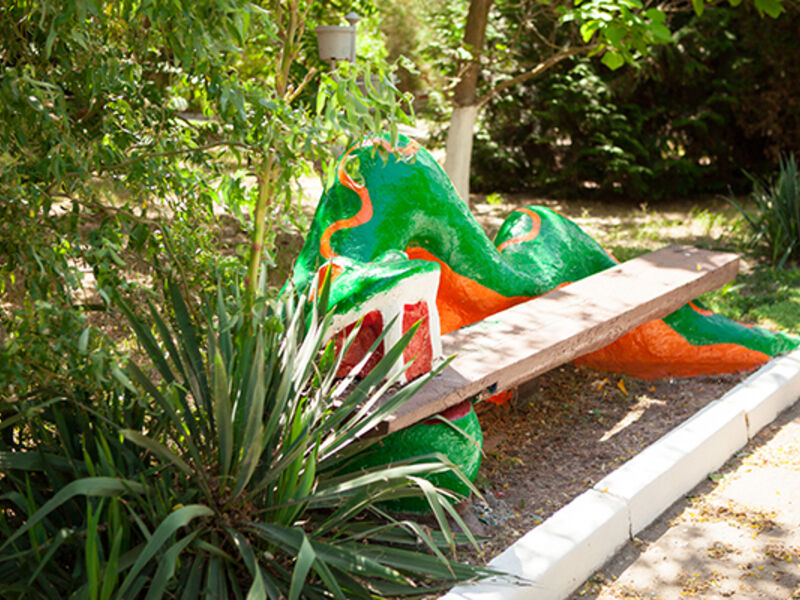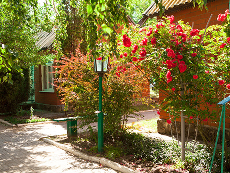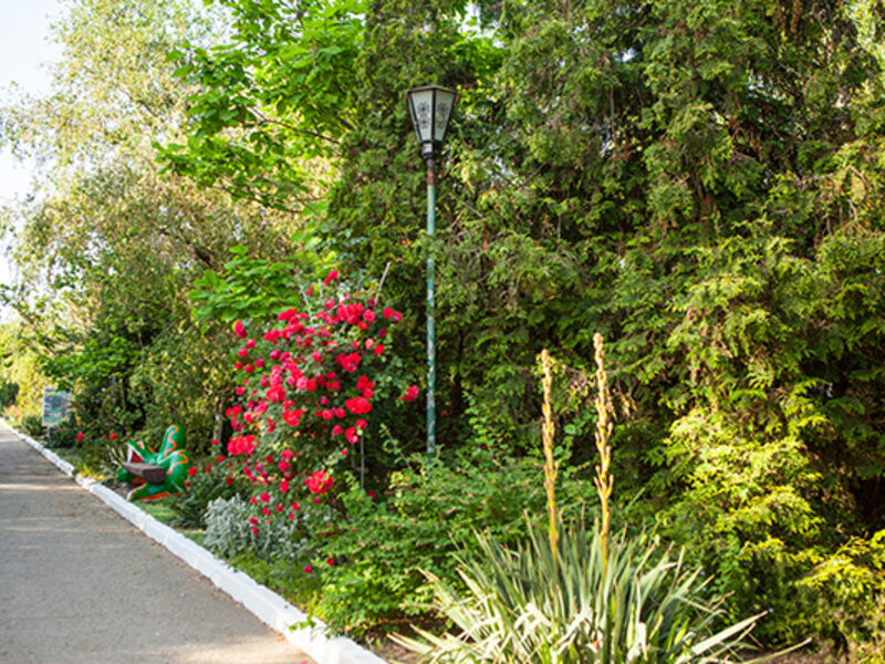 Огороженная территория пансионата ухожена и прекрасно озеленена, на ней много тенистых фруктовых деревьев, цветников, есть живописные фонтаны и водопады. Жилой фонд пансионата составлен из одно-,двух и трехэтажных домиков и коттеджей способных одновременно вместить более 340 человек. Все номера имеют санузлы с душем, отдельные на номер или блок. В каждом из них есть необходимая бытовая техника: кондиционер, холодильник и телевизор, другие удобства.