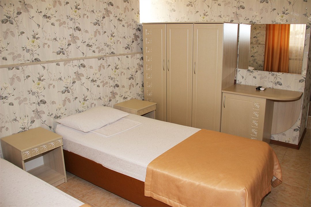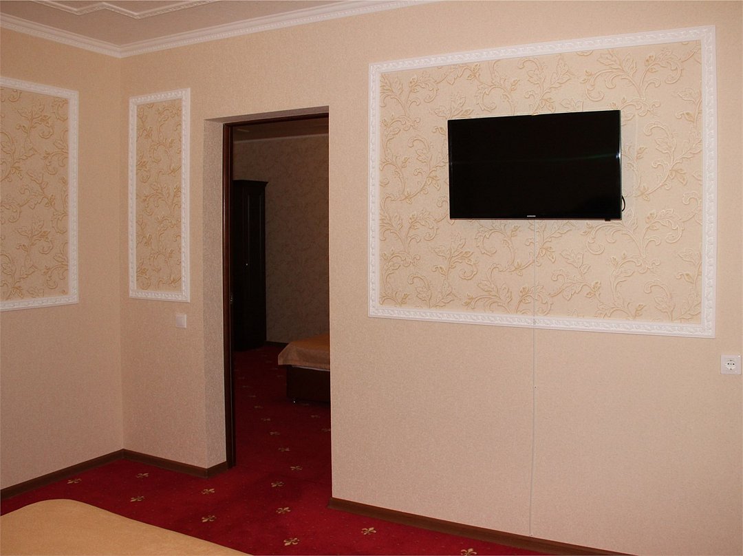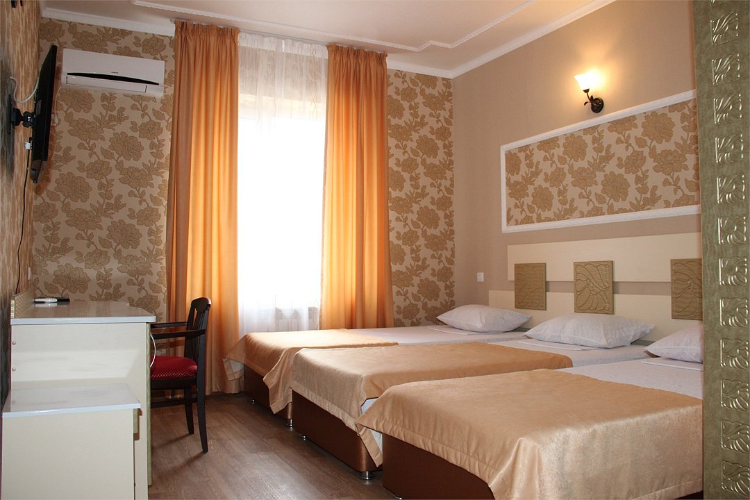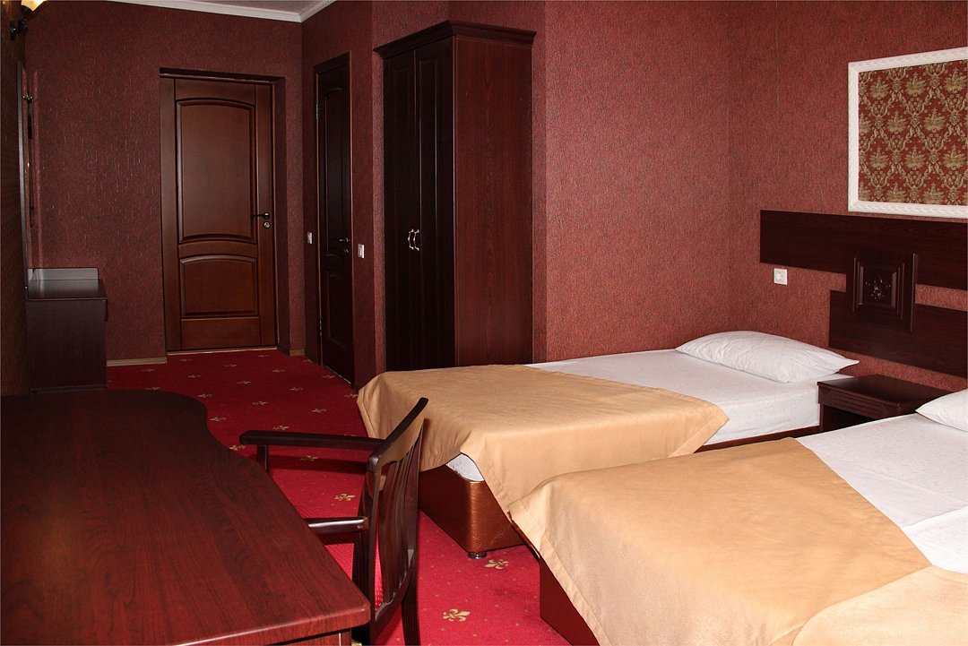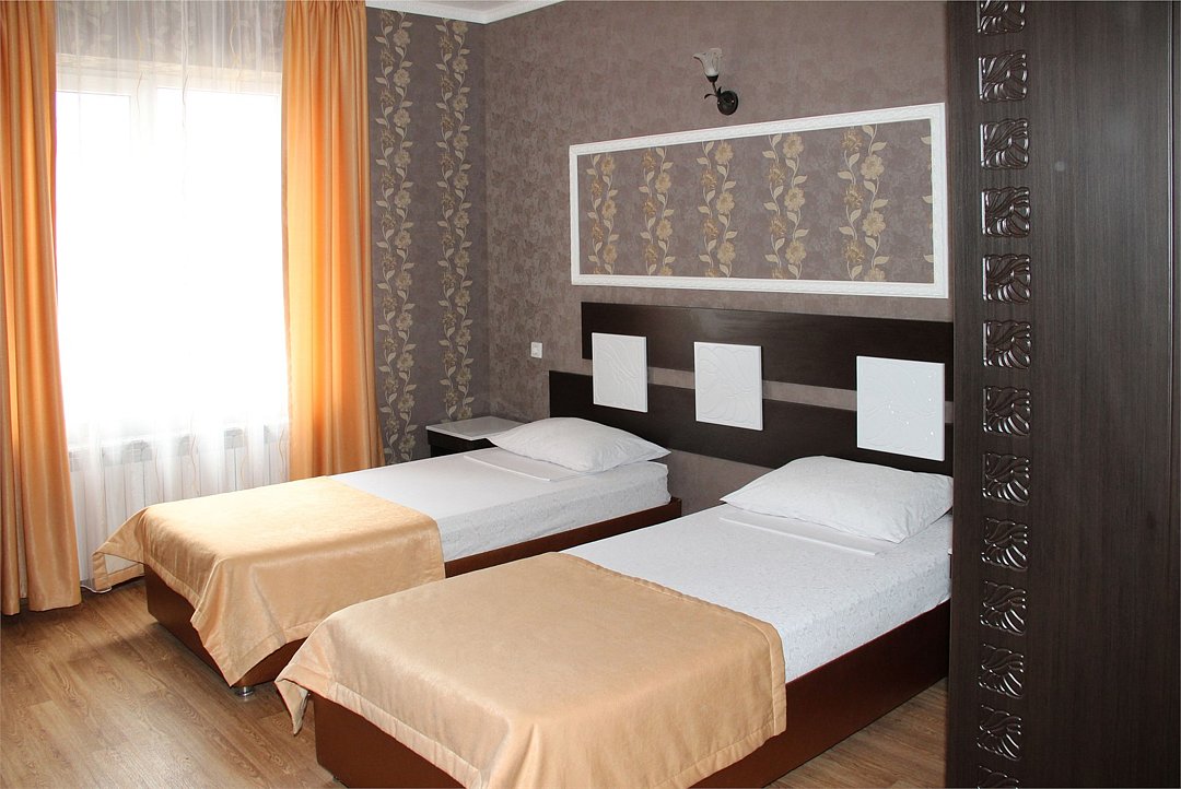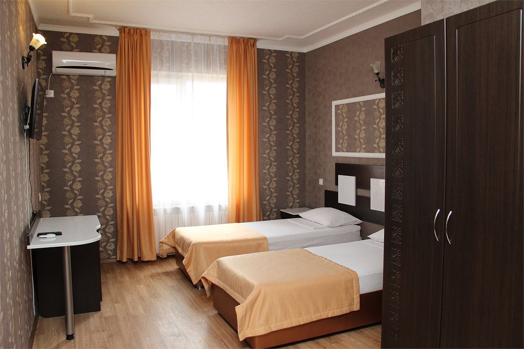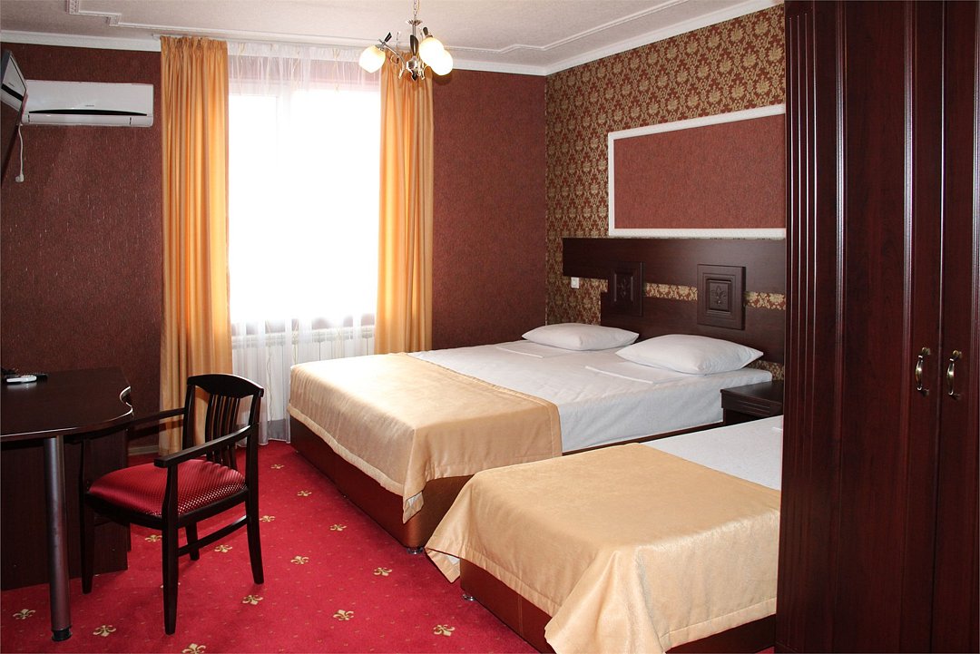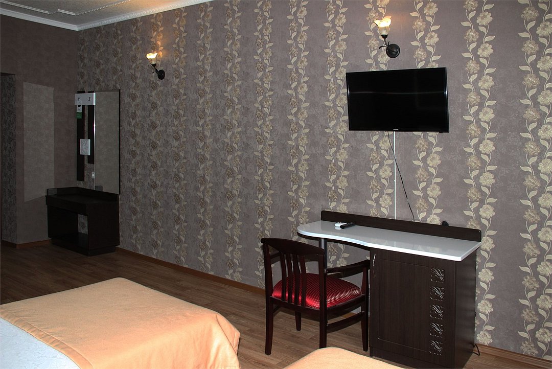 Собственная территория отеля, огороженная и охраняемая, благоустроена и озеленена, украшена цветниками. Трехэтажное здание отеля содержит номера категорий «люкс» и «стандарт», способные одновременно вместить почти 50 человек. Все комнаты – с отличной новой меблировкой, оборудованы отдельными санузлами с ванной или душем и туалетными принадлежностями. В каждом есть набор необходимой бытовой техники: сплит-системой, холодильником, сейфом, телевизором и Wi-Fi.