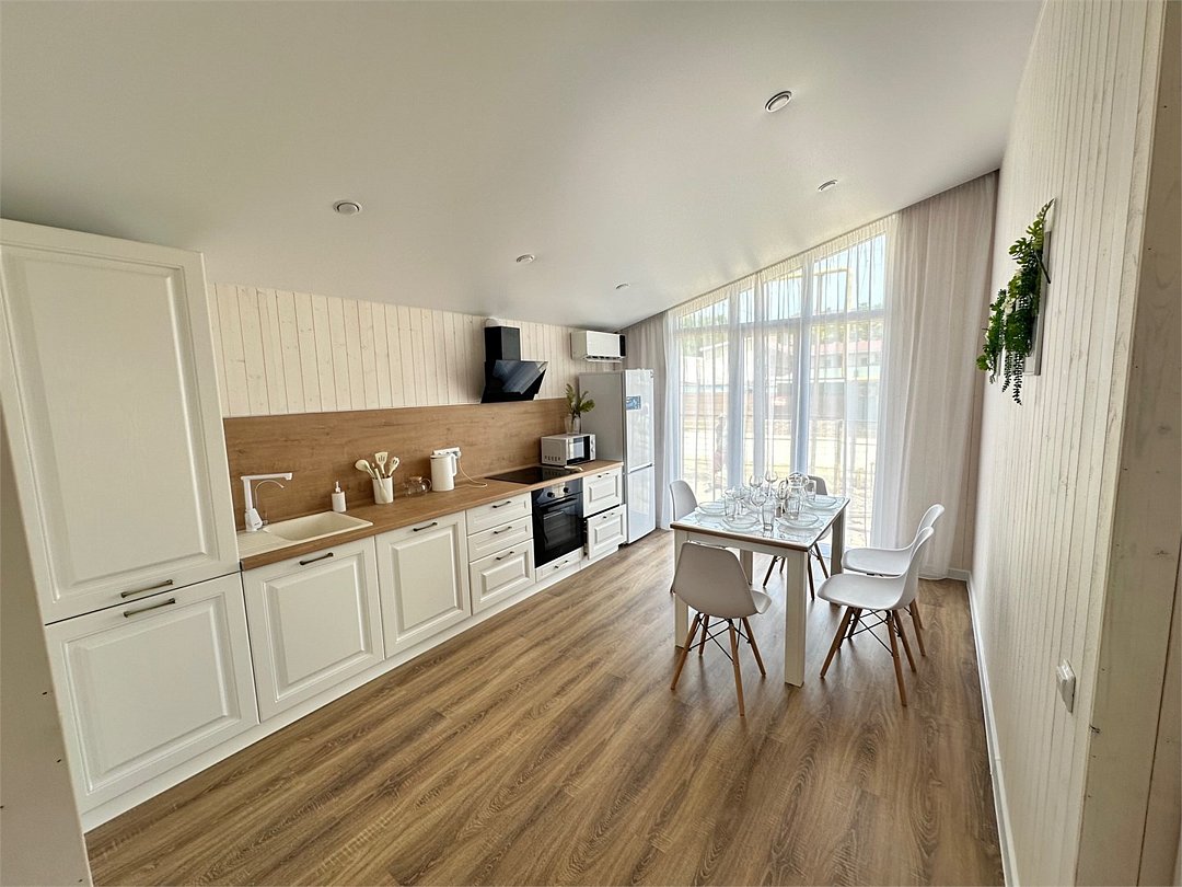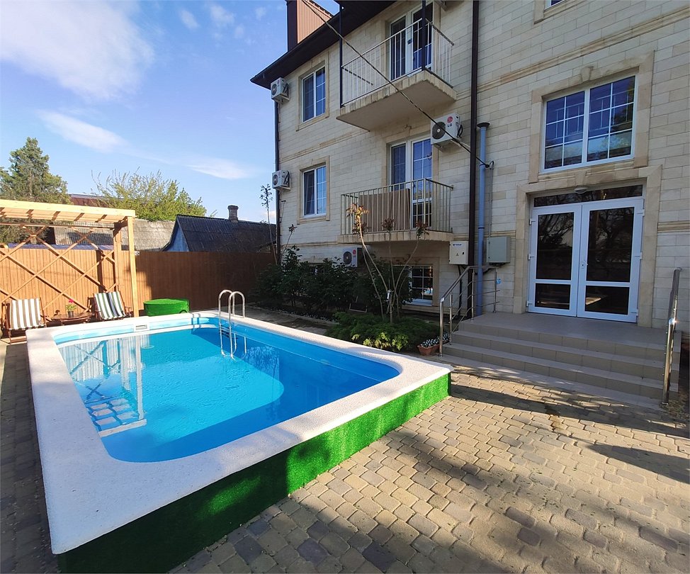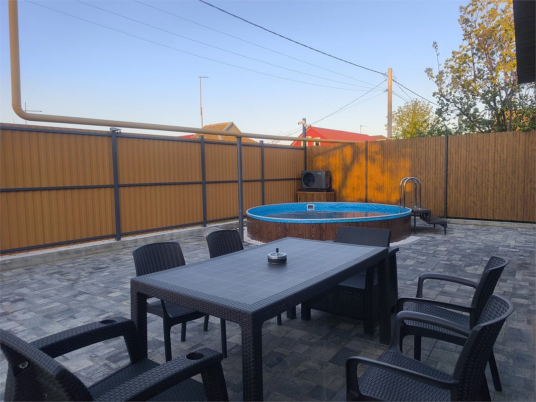 Большой дом с тремя спальнями, гардеробной, санузлом, кухней-гостиной. Собственный двор, стационарный подогреваемый бассейн, парковка, мангал. До моря 250 метров.Услуги и удобства
