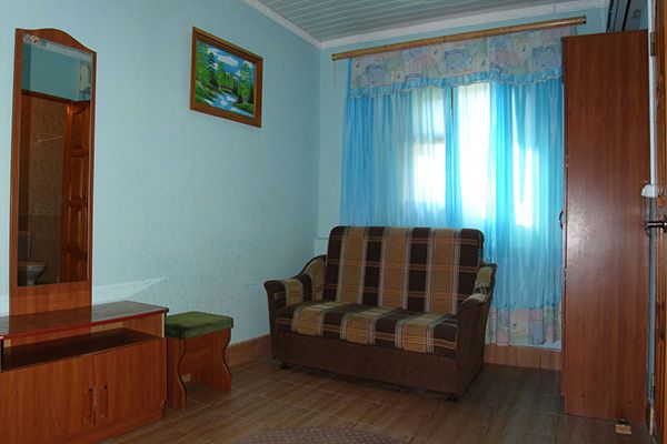 Территория гостиницы утопает в зелени, с уютными уголками для отдыха, что создает атмосферу уединения и комфорта. В двухэтажном основном корпусе и одноэтажном дополнительном корпусе расположено 20 комфортабельных номеров с современной отделкой. Все они оснащены санузлом с душем, а также необходимой бытовой техникой — кондиционером, холодильником, телевизором и Wi-Fi для удобства отдыхающих. Утром гостей ждет легкий завтрак, а в номерах регулярно проводится уборка.