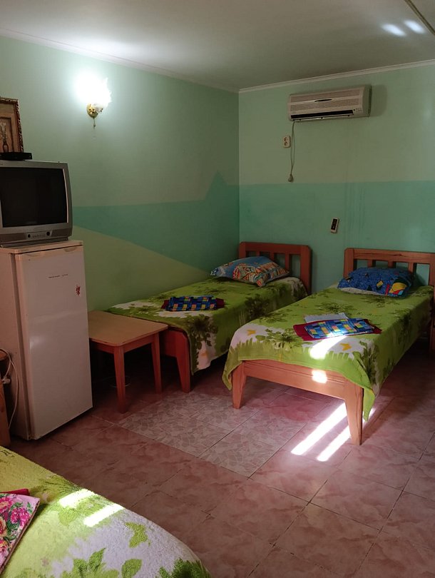 В доме гостям предлагаются 2,3,4.5-и местные номера. Необходимые удобства находятся в номерах. Здесь же имеются холодильник, телевизор, удобная мебель, действует платный Wi-Fi. В номерах регулярно делается уборка, смена постельного белья. Одновременно могут отдыхать 45 человек, плюс 20 дополнительных мест. Разрешается поселение с детьми любого возраста.
