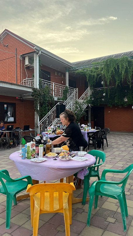 На охраняемой территории зоны отдыха имеются автостоянка, детская площадка, беседка, зона барбекю, бассейн, фонтан. Недалеко от гостевого дома функционирует дельфинарий, ферма крокодилов, парк развлечений, аптека. Пункт проката любого инвентаря, техники находится рядом с пляжем. Среди них удобные шезлонги, зонты, лежаки. В станице работают рестораны, кафе, ночные клубы, караоке.