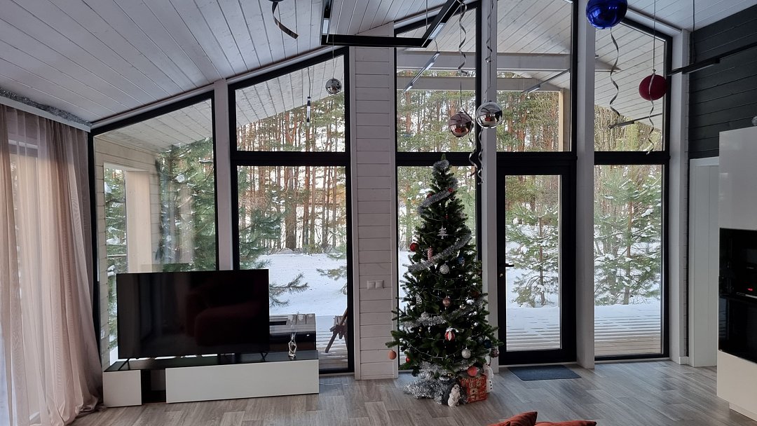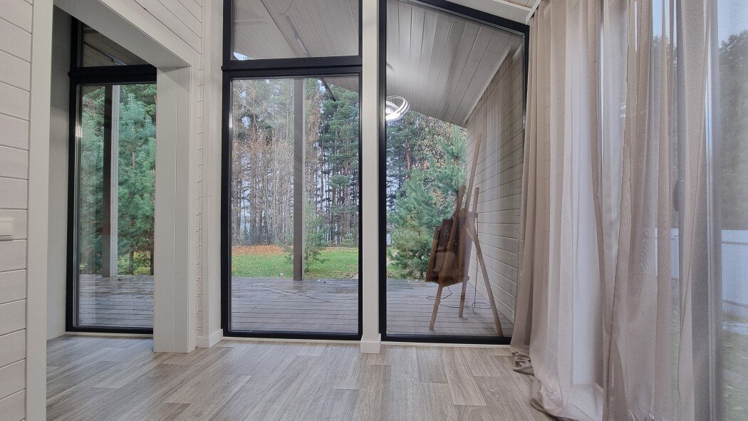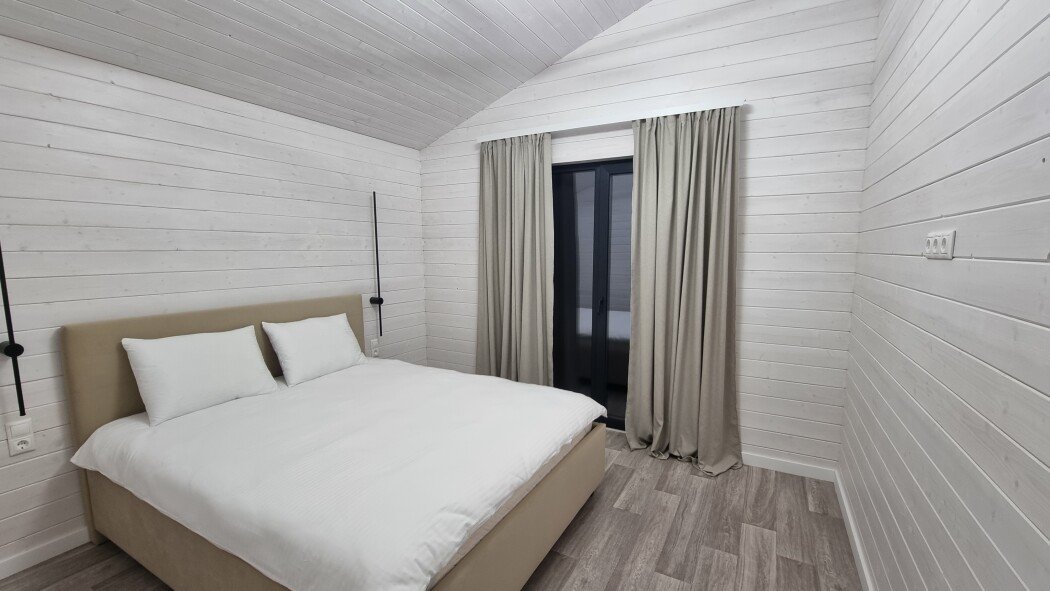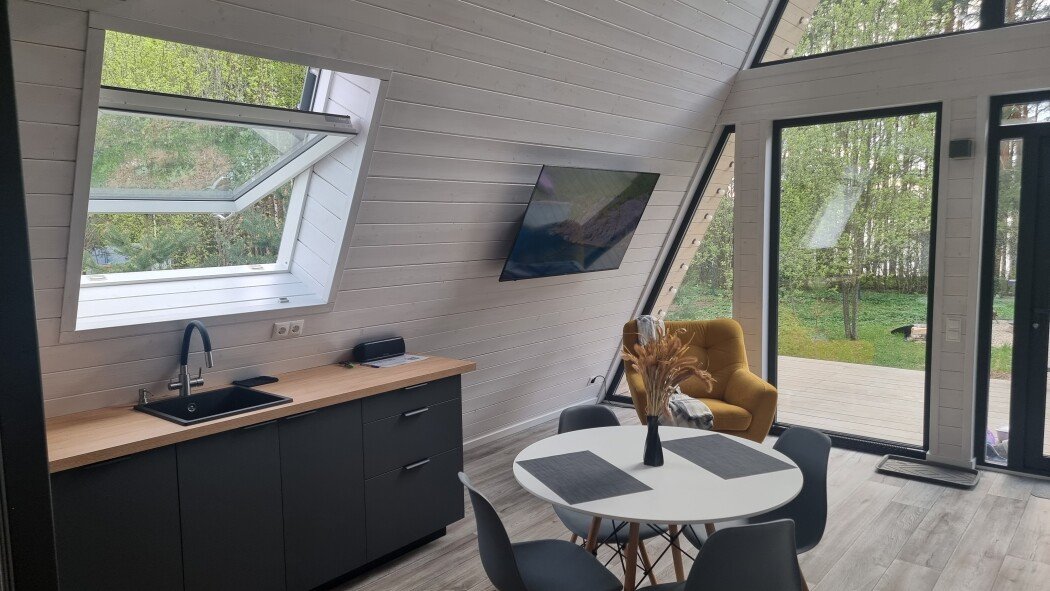 Большой дом Барнхаус 81 кв. м + 23 кв. м терраса, расположенный на участке 30 соток, на первой линии Можайского водохранилища. Дом состоит из большой кухни-гостиной, двух спален, небольшой комнаты с диванчиком для отдыха, прихожей и санузла. Подойдёт для тихого семейного отдыха. Вечеринки запрещены. Дом оборудован современной новой техникой и всем необходимым для приятного отдыха. Отопление тёплым полом. Шикарные виды из панорамных окон не оставят вас равнодушными. На территории костровая зона, которая позволит вам с удовольствием посидеть у костра в компании друзей и любимых. Есть мангал и барбекю. Выйдя из калитки вы попадаете в сосновую лесополосу, которая идёт вдоль берега водохранилища, прогулки выходят просто замечательными. Пляж и береговая линия практически сразу за калиткой. Для гостей доступен прокат сапбордов и велосипедов. В пешей доступности остатки усадьбы Горетово и старая церковь. В соседней деревне небольшой зоопарк. В 40-50 минутах езды шикарный сафари-парк с дикими животными, аэроград Можайский, где можно полетать на самолёте. В 30 минутах езды можно замечательно провести время катаясь на лошадях. В Можайске есть такой досуг как кинотеатр, бассейн и т.п. Любителям пара можно арендовать баню на турбазе, которая находится в 200 метрах. В 5 минутах на авто находятся сетевые магазины и пункты выдачи.