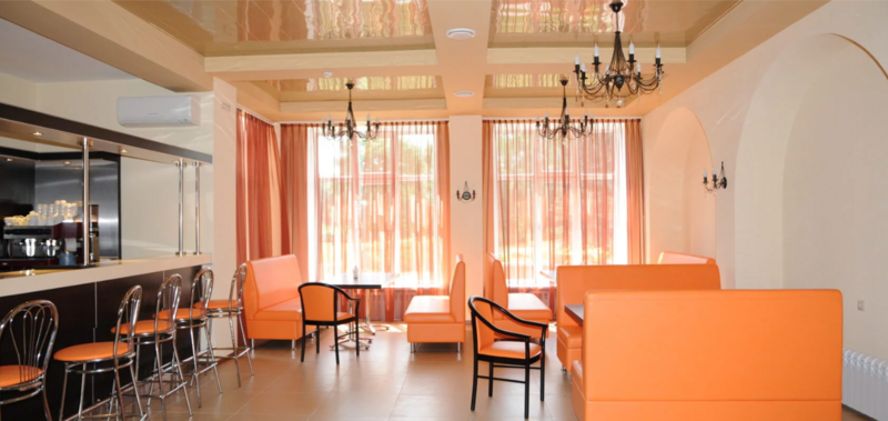 - Ресторан «Поляны». Режим работы: завтрак с 09:00 до 11:00, обед с 13:30 до 15:00, ужин с 18:20 до 19:45. Стоимость питания для взрослого: завтрак — 480 ₽, обед — 840 ₽, ужин — 600 ₽. Стоимость питания для детей от 5 до 11 лет: завтрак — 360 ₽, обед — 552 ₽, ужин — 384 ₽.