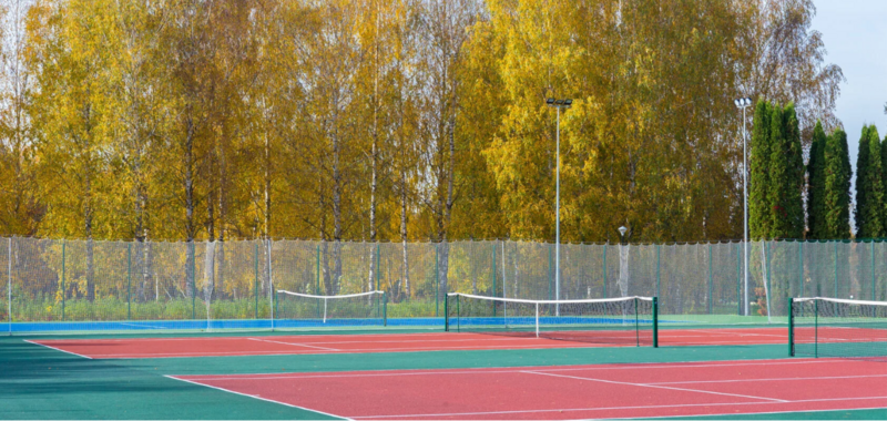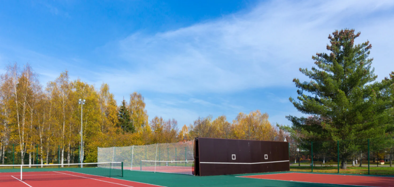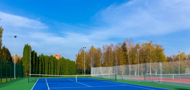 - Теннисные корты. Функционирует летом и в тёплую погоду в межсезонье. Стоимость: теннисный корт открытый (хард) — 1000 ₽/час (проживающим гостям), 1300 ₽/час (без проживания); теннисный корт открытый (полиуретан с резиновой крошкой) — 1000 ₽/час (проживающим гостям), 1300 ₽/час (без проживания); теннисный корт открытый (тренировочный) — 500 ₽/час; услуги тренера по теннису дополнительно — 1500 ₽/час.