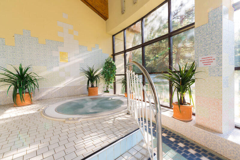 Читать полностьюУютный аквапарк пансионата «Поляны» привлекает спокойной атмосферой, живописными видами и разнообразными водными развлечениями для гостей всех возрастов. Основной бассейн аквапарка оборудован двумя дорожками, подходящими как для свободного плавания, так и для индивидуальных или групповых занятий. Для детей предусмотрена отдельная зона с неглубоким бассейном, фонтанами и гейзерами, а также ручеек и мини-бассейн для самых маленьких гостей.