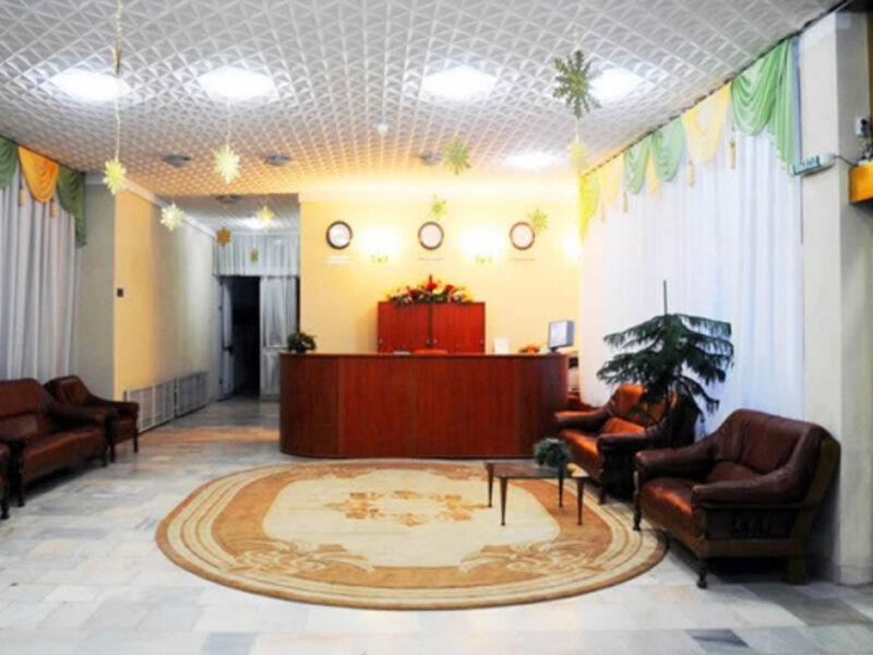 На территории пансионата расположены 5 современных комфортабельных корпусов на 330 номеров, общей вместимостью до 1200 человек. На территории пансионата Поляны отличная инфраструктура. К услугам гостей современный аквапарк с бассейном, ресторан, бар, разнообразные спортивные площадки, боулинг, бильярд, библиотека, кинозал.