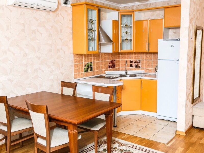 Стол и стулья, санузел, ванная комната (ванна, душ), телефон, телевизор, чайник, набор посуды