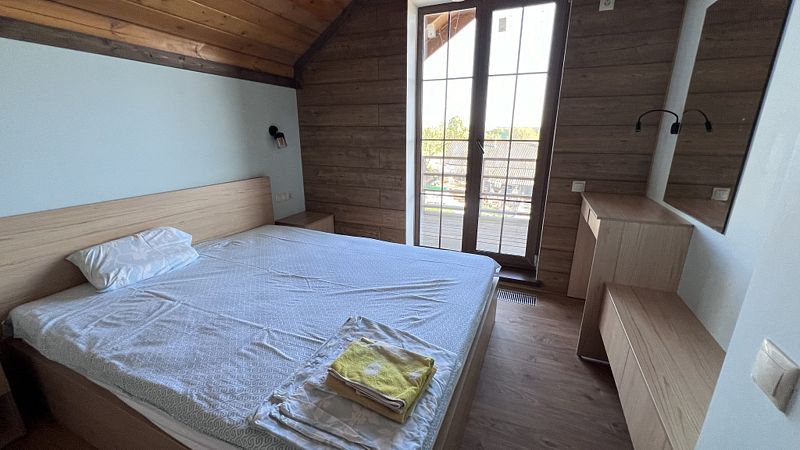 - 3 спальни на втором этаже, в каждой по 1 двухспальной кровати (для 2 чел) и 1 по доп. месту на раскладушках.