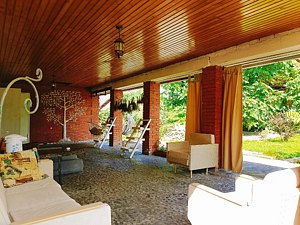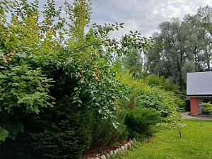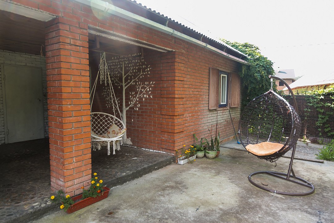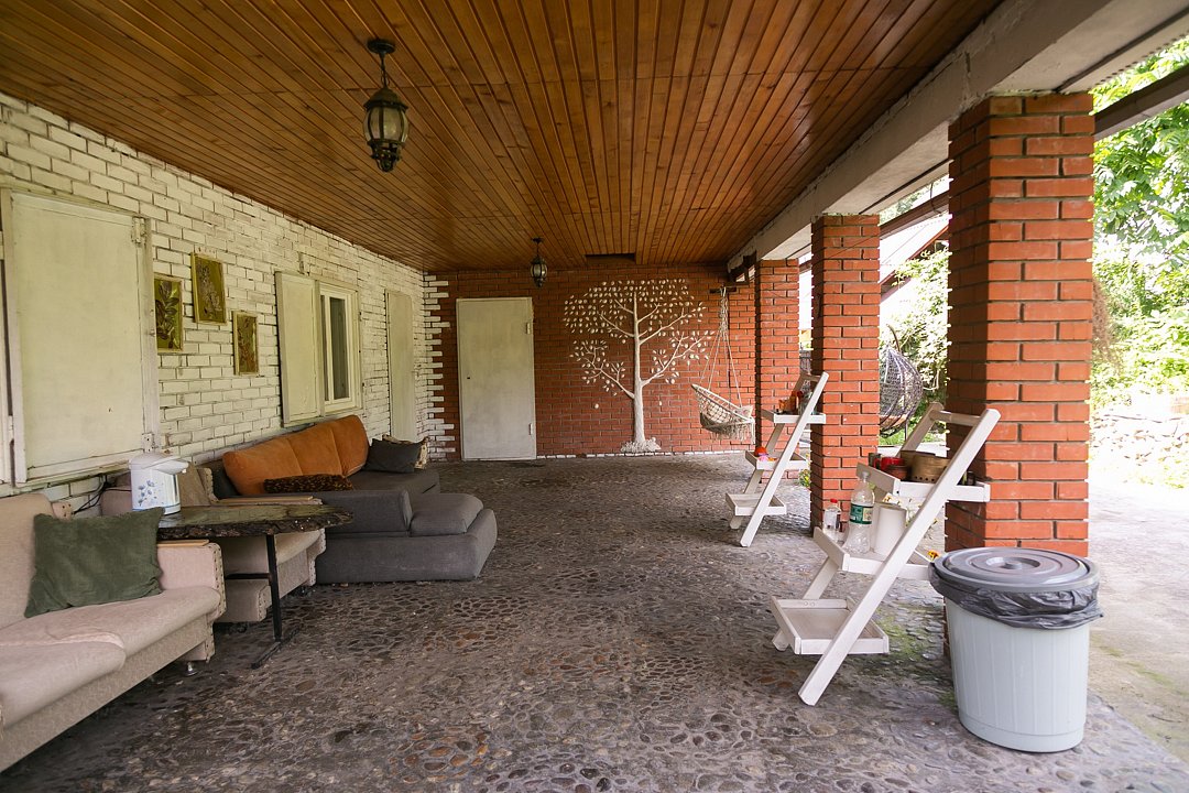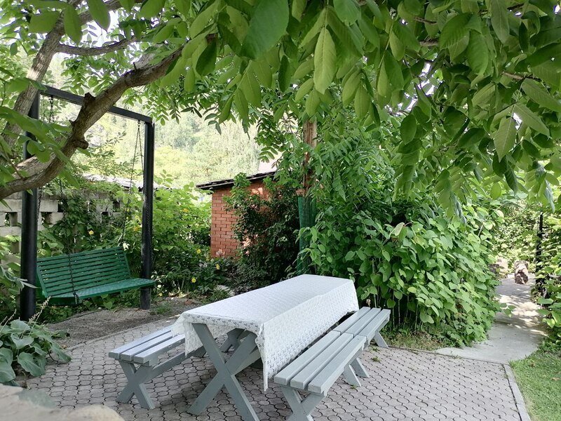 - Для вашего удобства предлагаем открытую площадку под кронами крепкого маньчжурского ореха со столами и качелей ,если вас застанет дождь вы можете перейти на террасу , в которой есть большой диван с мангалом и всеми принадлежностями для барбекю.
