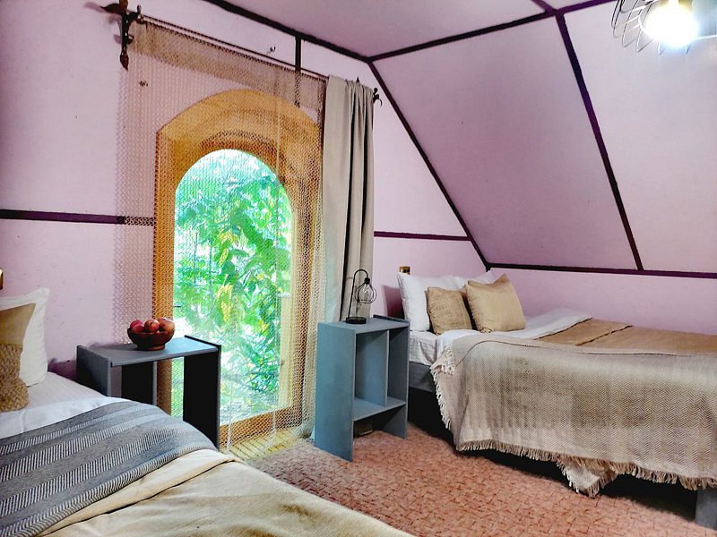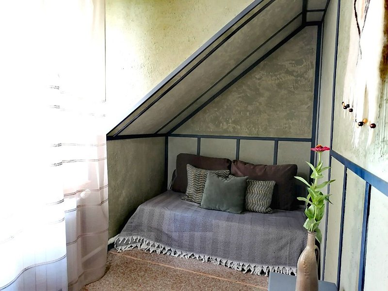 На втором этаже расположено три спальни с тремя двухместными кроватями и двухместным диваном.