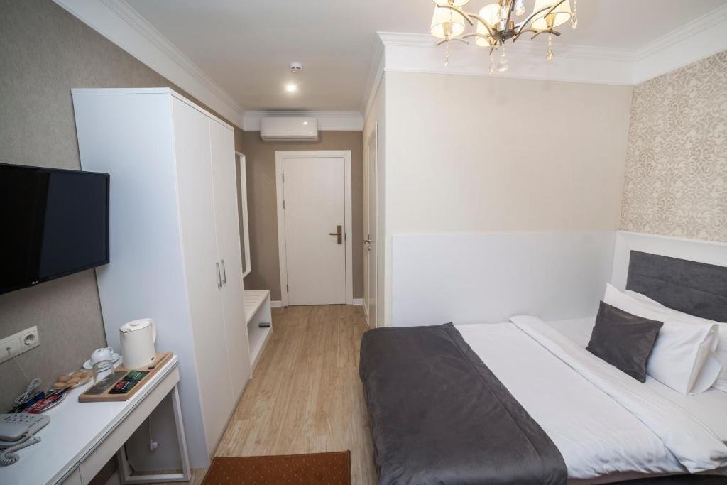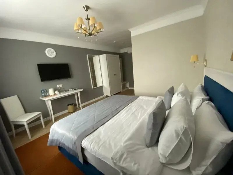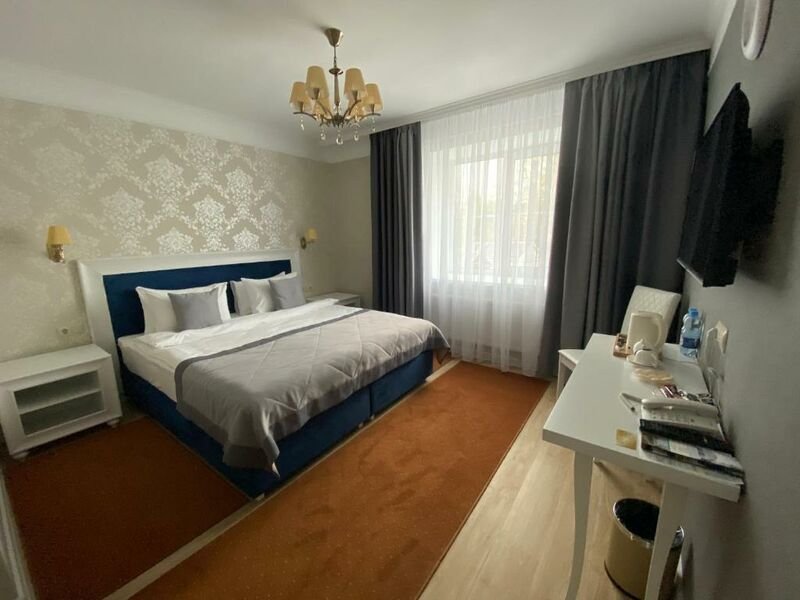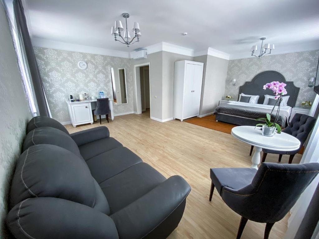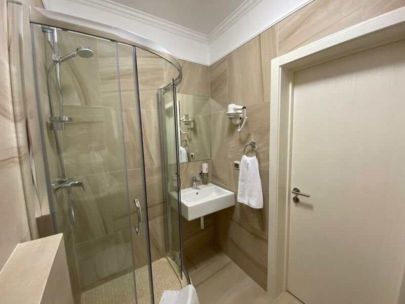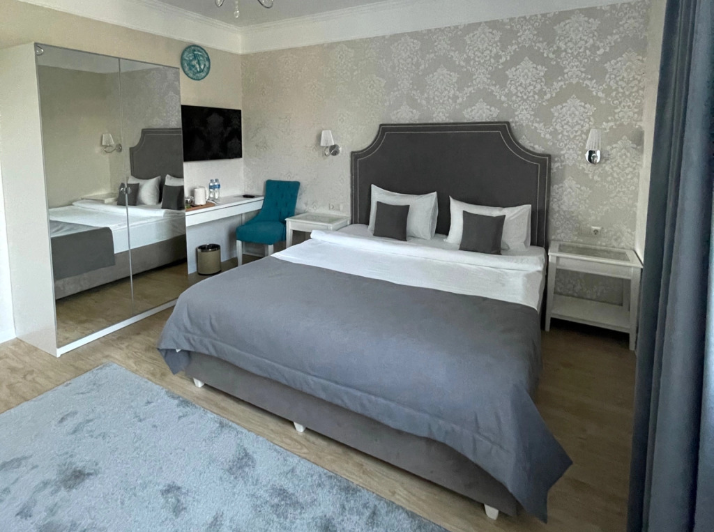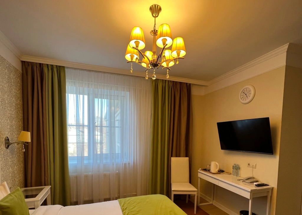 В номере вы найдёте халат и тапочки. Оснащение зависит от выбранной категории номера.
