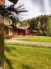 Гостиничный комплекс на берегу реки с панорамным видом на реку и территорию Базы отдыха.