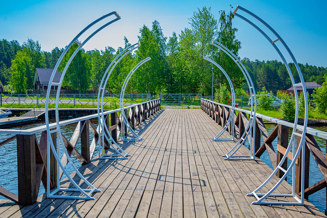 На территории базы отдыха есть банные комплексы, сибирские чаны, беседки и яхт-клуб со стоянкой для водоходных суден. Работает прокат сап-бордов и катамаранов.
