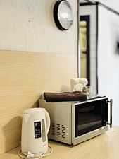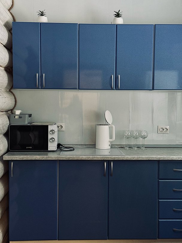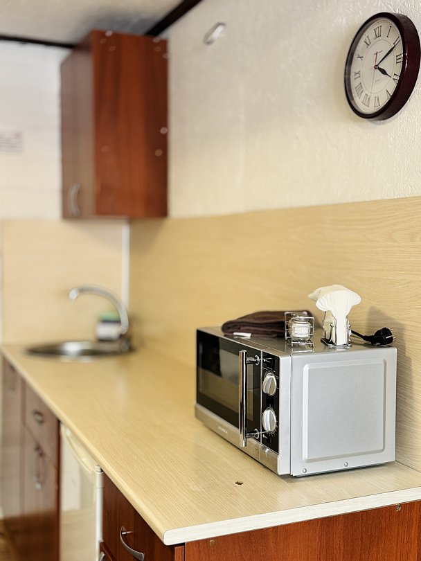 - кухонный гарнитур и все необходимое: микроволновая печь; холодильник; плита; минимальный набор посуды;
