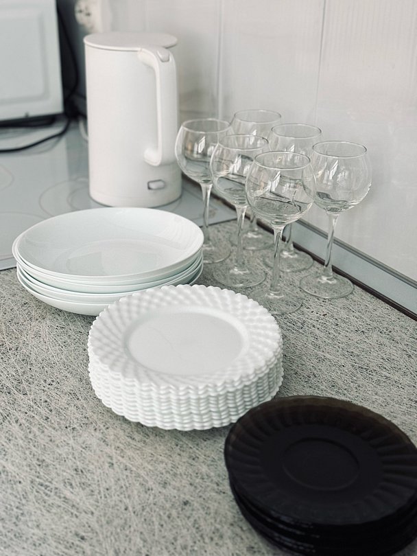 - кухонный гарнитур (минимальный набор посуды);