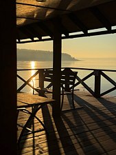 Расположение площадки поражает своей уникальностью: просторная веранда расположилась прямо на берегу реки, даря каждому гостю ощущение свободы и гармонии природы.