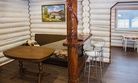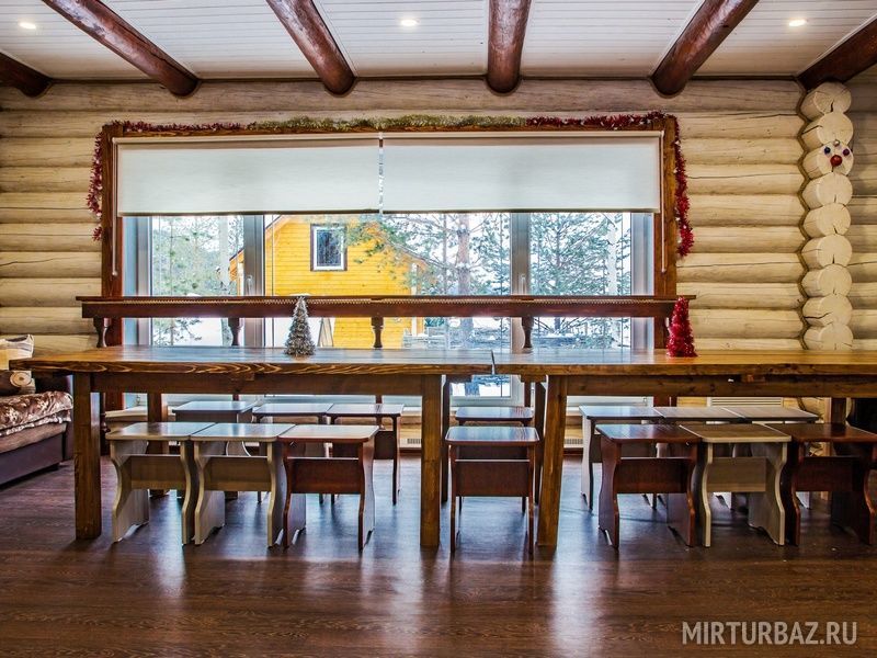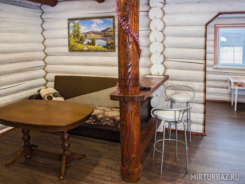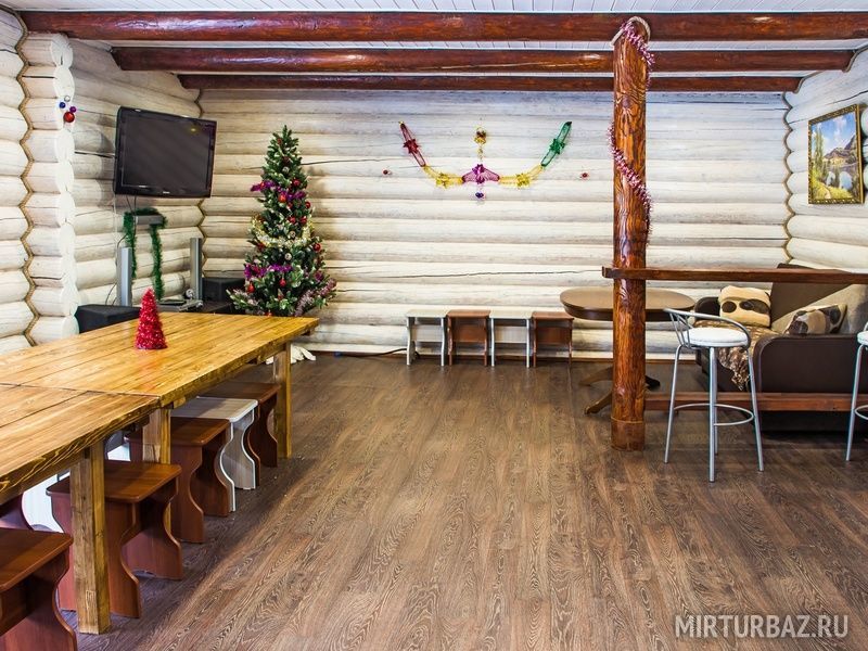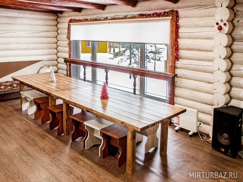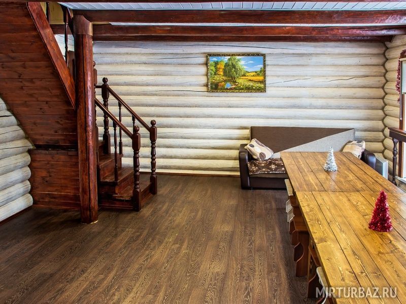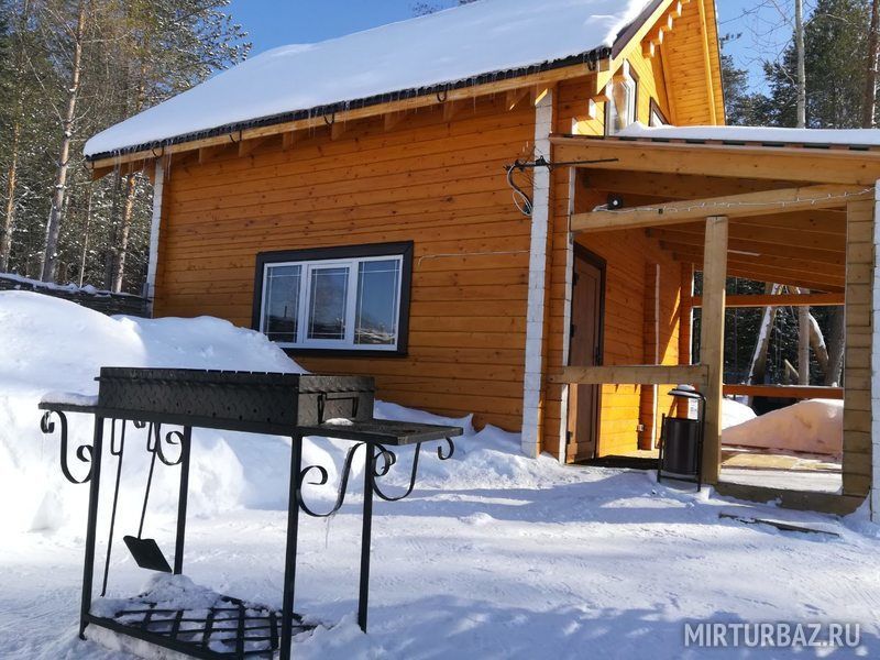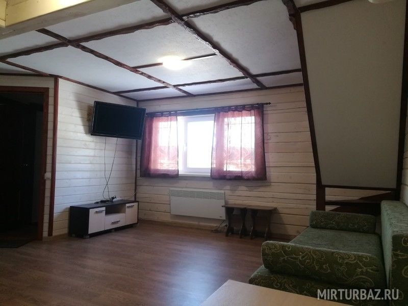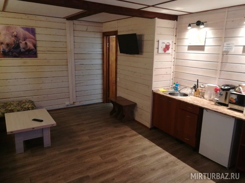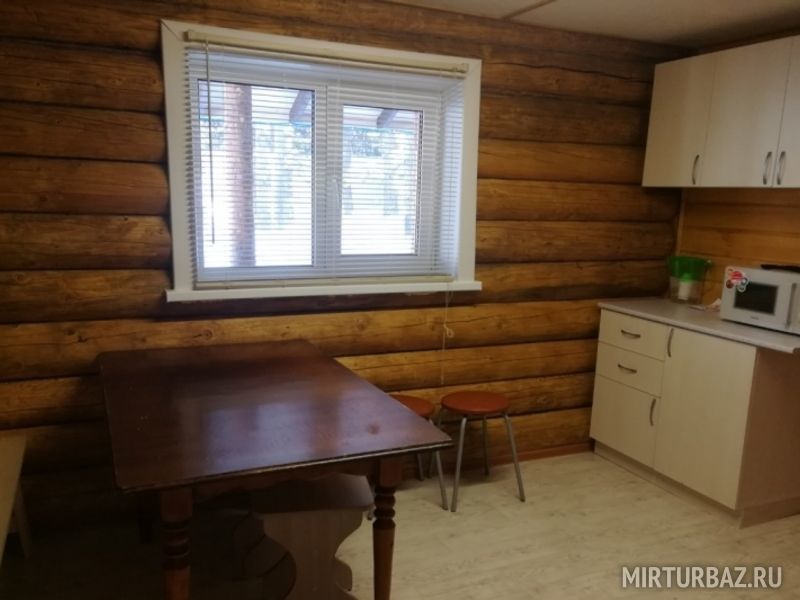 Дом находиться отдельно от других. Ближе к лесной части базы. В гостиной за большим столом (два стола) уместится вся Ваша дружная и шумная компания. В Вашем распоряжении большой телевизор (1,2 этаж), Wi-Fi. Кухня оборудована всем необходимым: посуда, столовые приборы, обеденный стол, холодильник, плита, микроволновая печь, электрический чайник. Возле дома на огороженной территории имеется открытая терраса, мангальная зона, лавочки и стол.