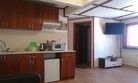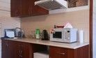 Кухня оборудована всем необходимым: обеденный стол, холодильник, плита, микроволновая печь, электрический чайник.