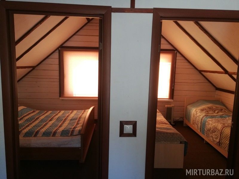 На втором этаже имеются две отдельные комнаты со спальными местами.
