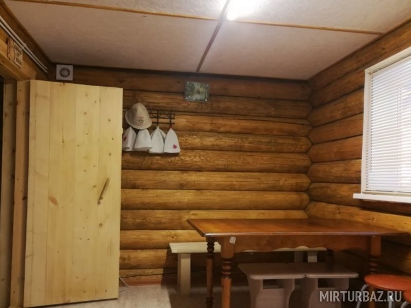 Баня из сруба комфортно вмещает до 4 человек. Свыше 4 человек — доплата 150 руб. с 1 человека.
