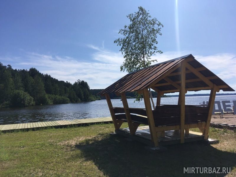Небольшая, но уютная беседка прямо на берегу реки идеально подходит для посиделок дружной компанией.