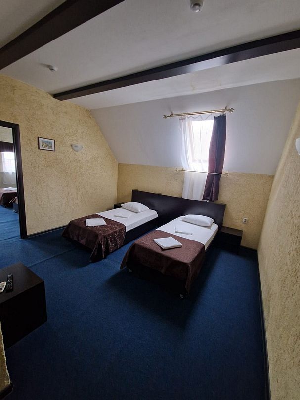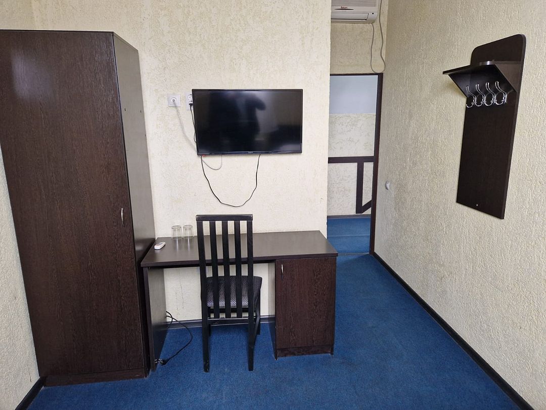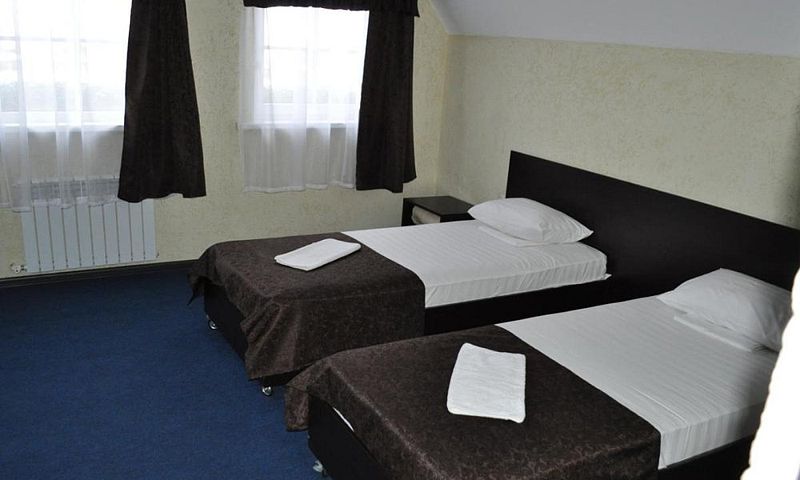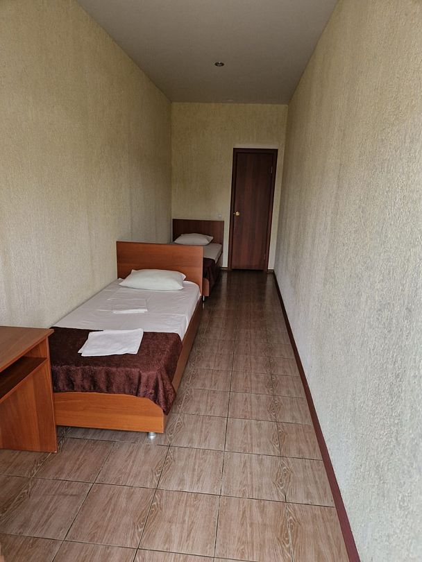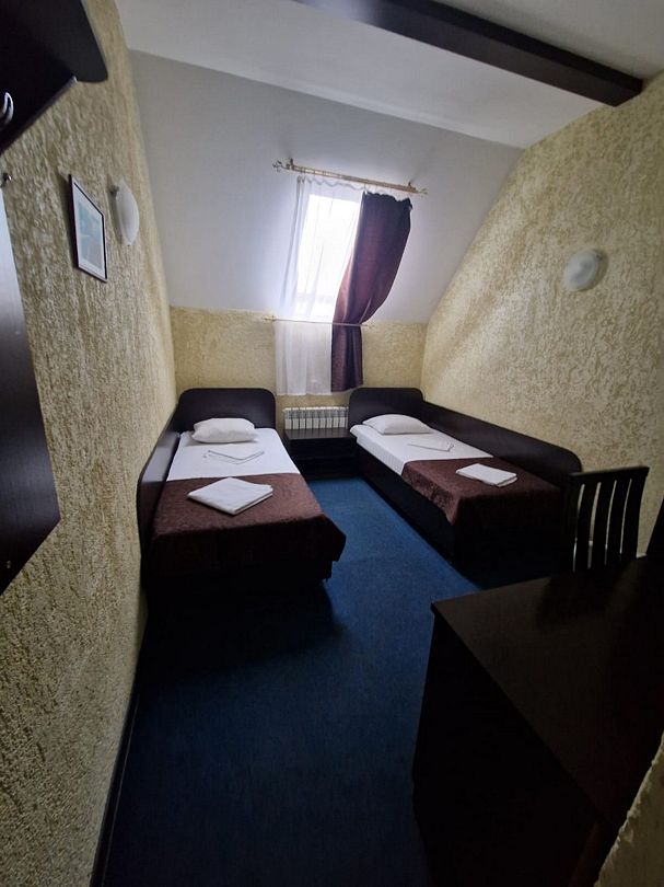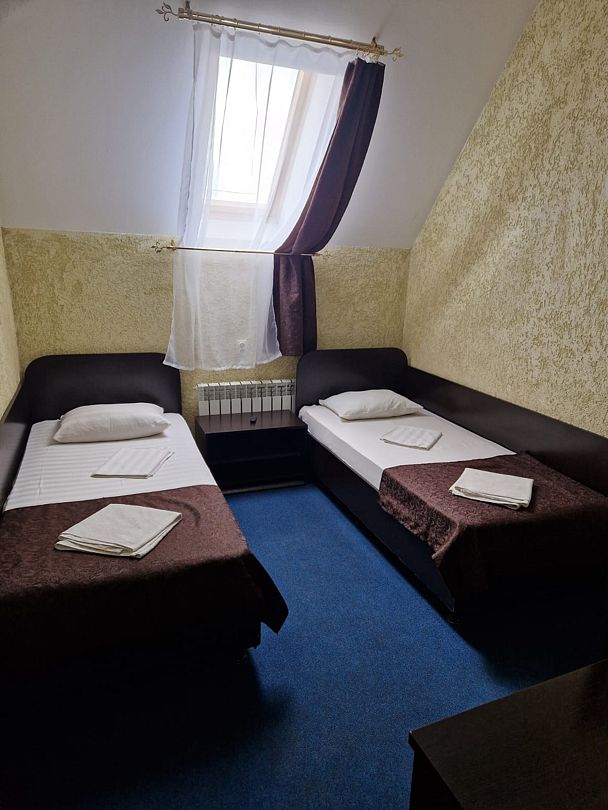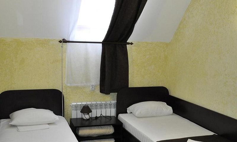 В номере 2 односпальные кровати, телевизор, сплит-система, отопление, стол и стулья, шкаф, постельное белье. Ванная комната: душ, туалет, туалетные принадлежности, фен. Общая кухня. Бесплатный wi-fi на всей территории.В гостиничном номере