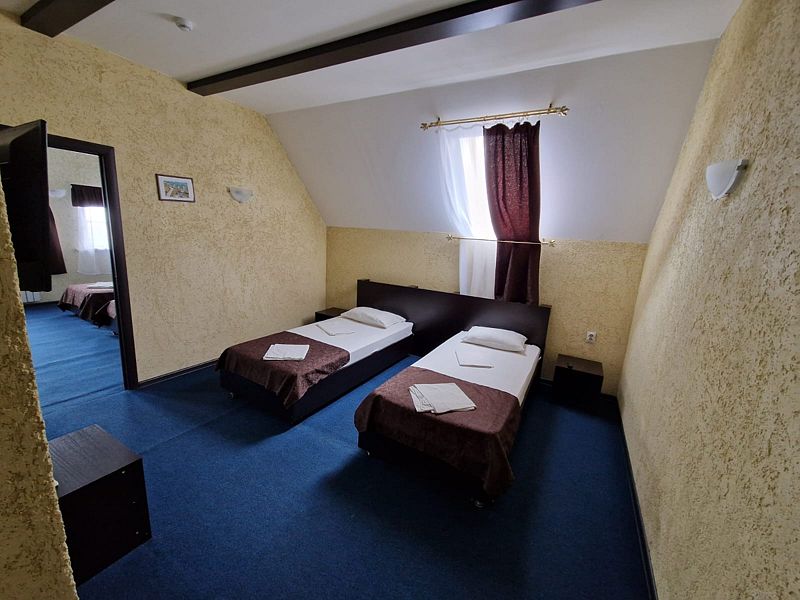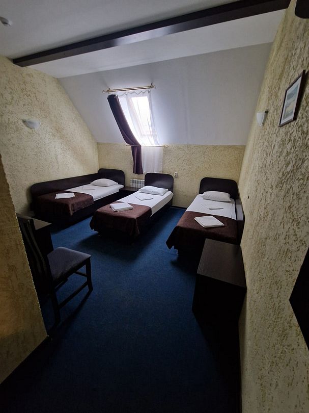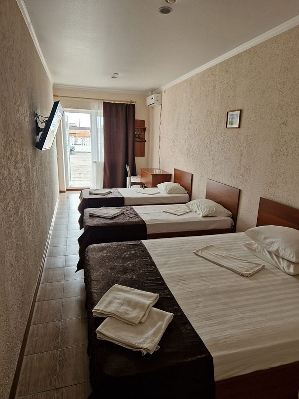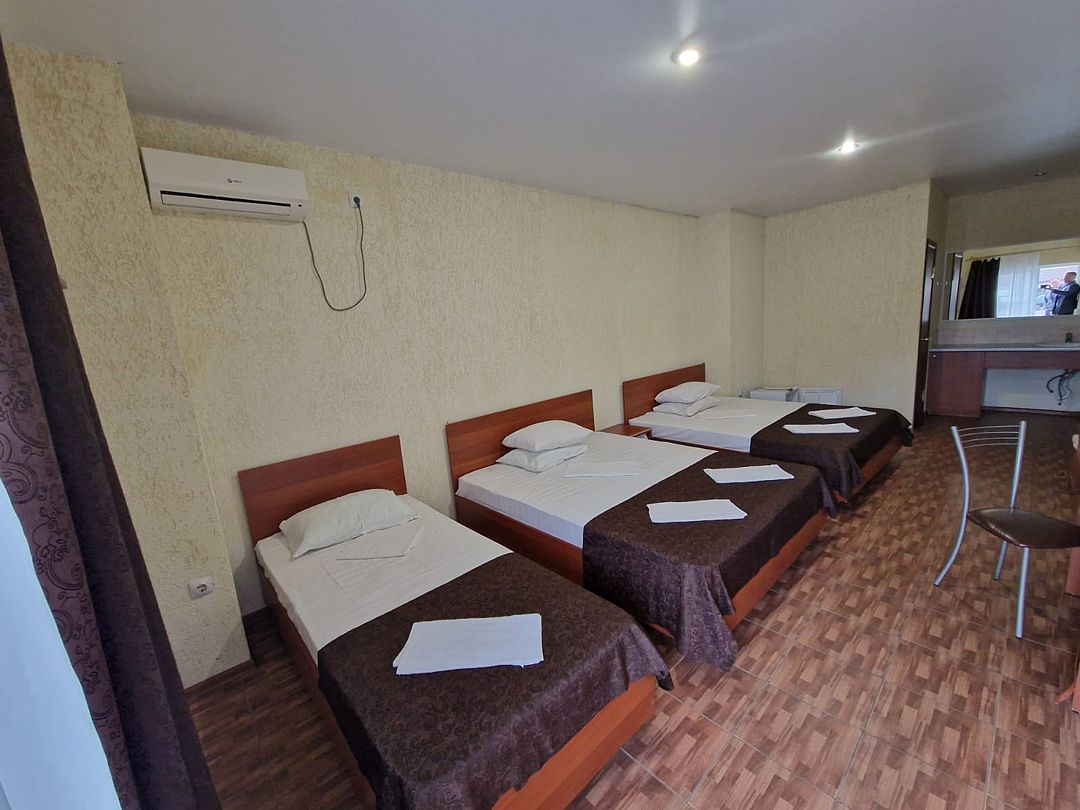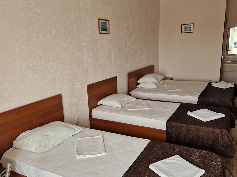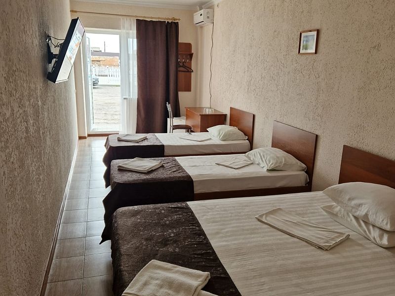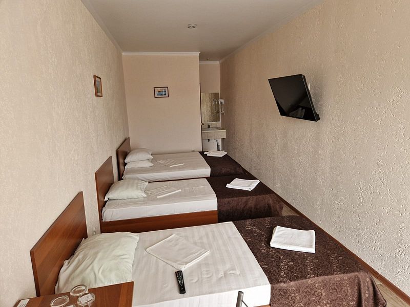 В номере 3 односпальные кровати, телевизор, сплит-система, отопление, стол и стулья, шкаф, постельное белье. Ванная комната: душ, туалет, туалетные принадлежности, фен. Общая кухня. Бесплатный wi-fi на всей территории.Спальные места