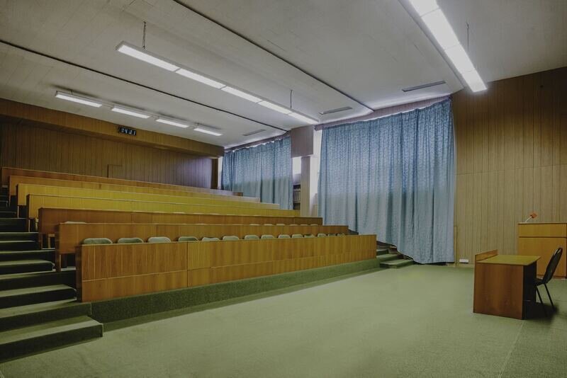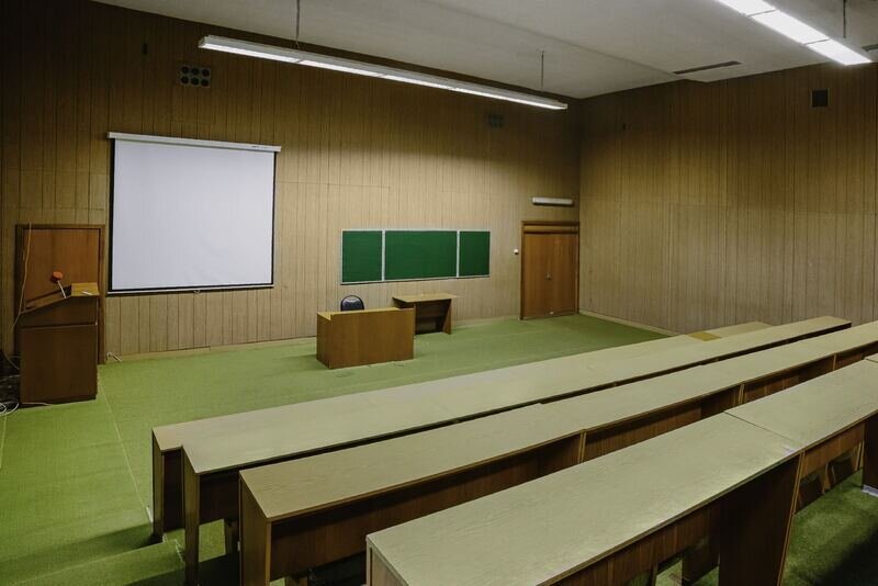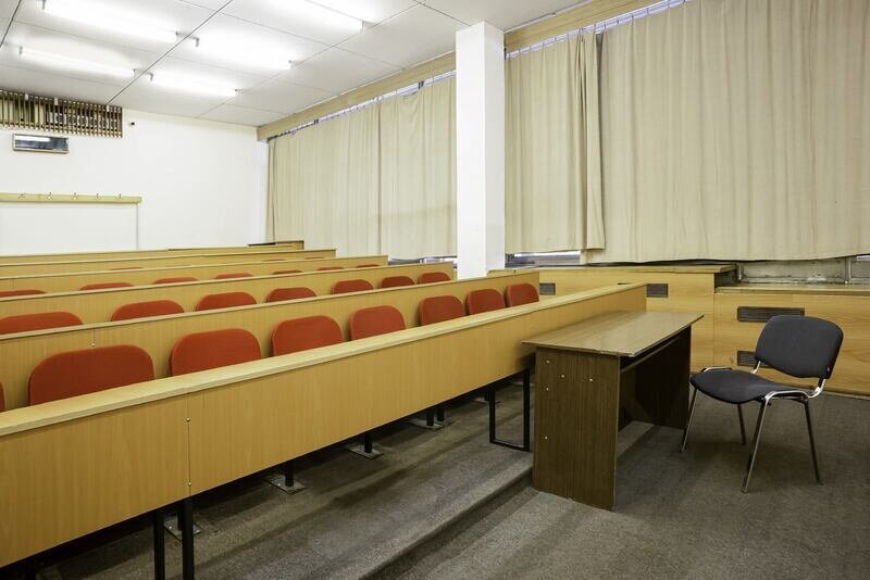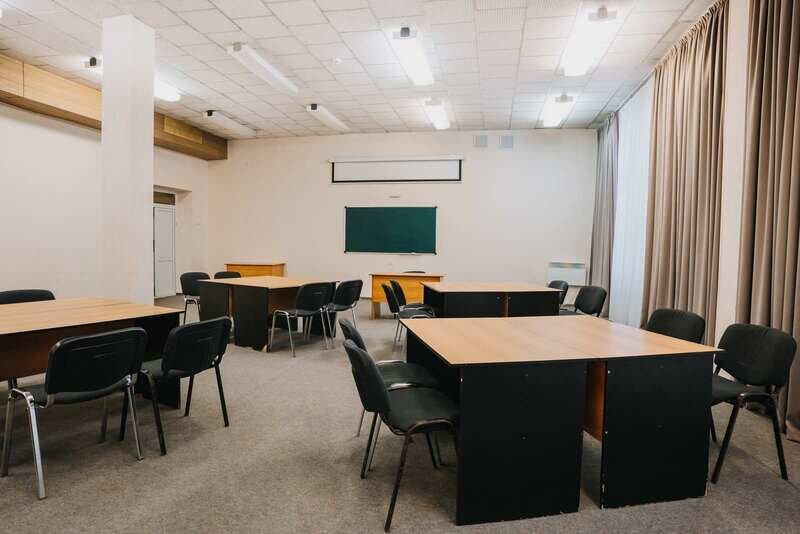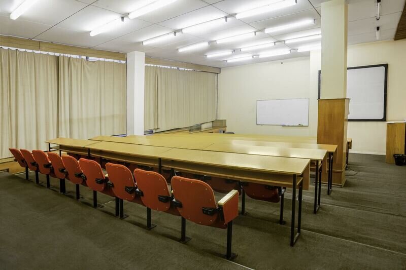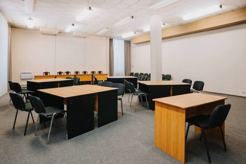 Данная аудитория расположена недалеко от ресепшн и может быть использована как штабная комната. Аудитория оснащена кондиционером.