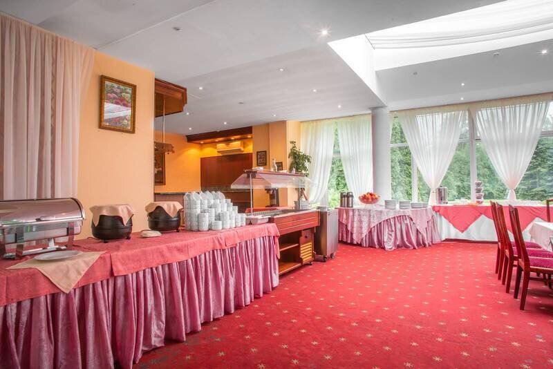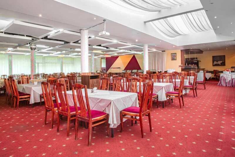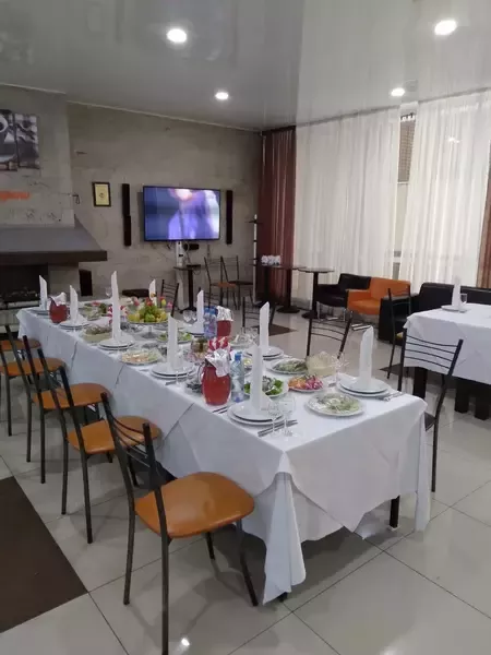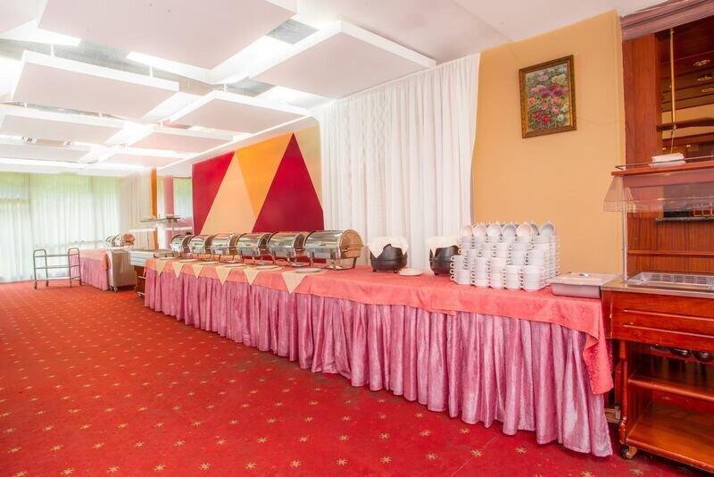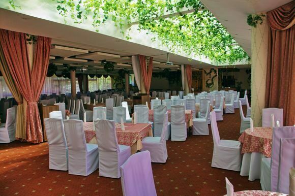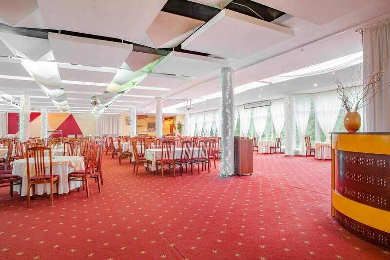 Зал рассчитан на 250 гостей. Обслуживание гостей в ресторане проводится по системе «Шведский стол» (завтрак, обед, ужин).