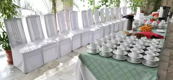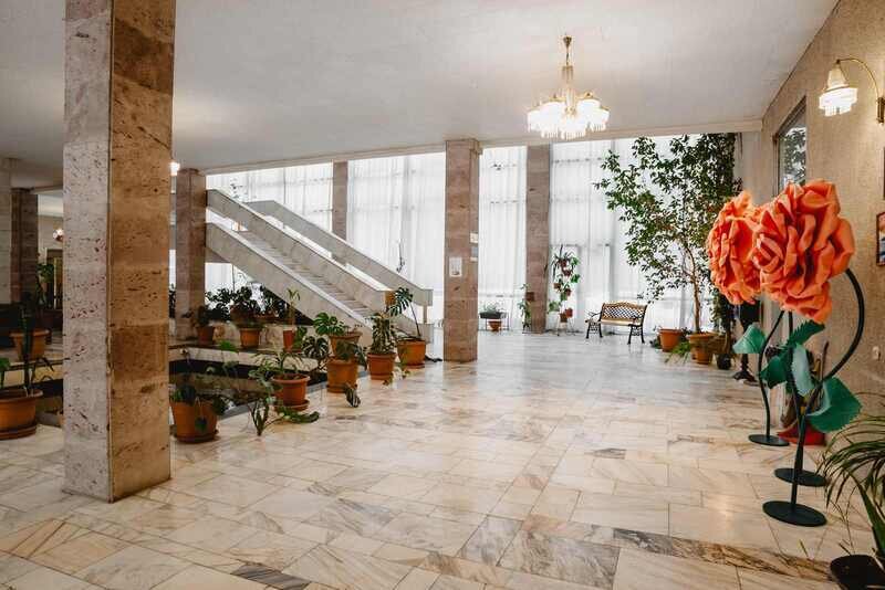 В зале много зеленых растений, цветов. В центре небольшой водоем с экзотическими рыбками. Также в зале в период проведения корпоративных мероприятий организуются кофе-паузы.Услуга оплачивается отдельноИнформация от 22 февраля 2024