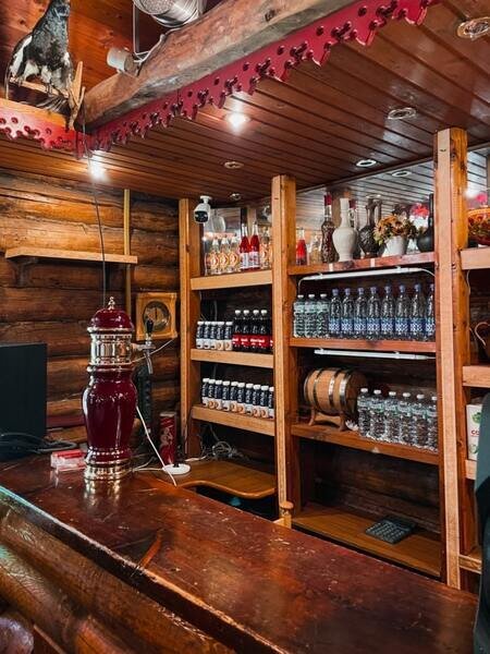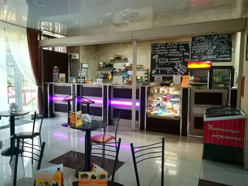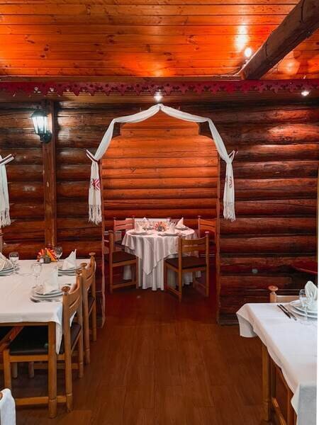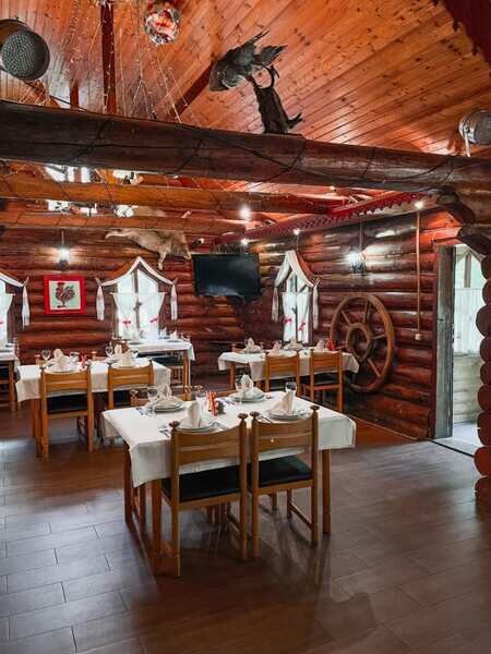 Кафе-бар «Русская изба» имеет колоритную обстановку, стилизованную под старорусский стиль. Кафе оснащено TV панелью, предоставляется бесплатный Wi-Fi. Вам предложат прохладительные напитки, горячие бутерброды, пиццу, а также можно заказать любые блюда из меню.