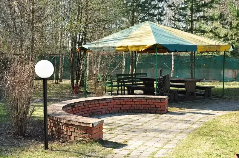 Изюминка этого помещения — круглогодичное использование. Дровяной камин в холодное время года согреет вашу компанию. По вашему желанию беседка может быть украшена шарами, цветами, декорирована тканью.