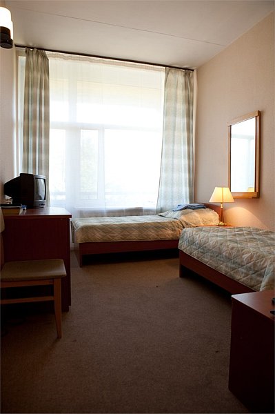Комфортабельный уютный однокомнатный номер с красивым видом из окна и раздельными кроватями. В номере: телевизор, мини-холодильник, телефон.