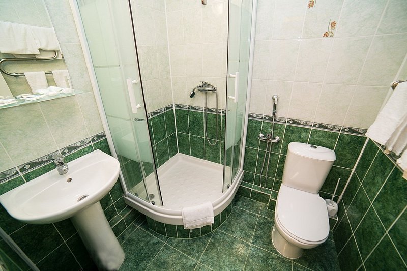 В ванной комнате: душевая кабина, туалет, набор (шампунь, гель для душа, мыло, шапочка для душа). В номере производится ежедневная влажная уборка.