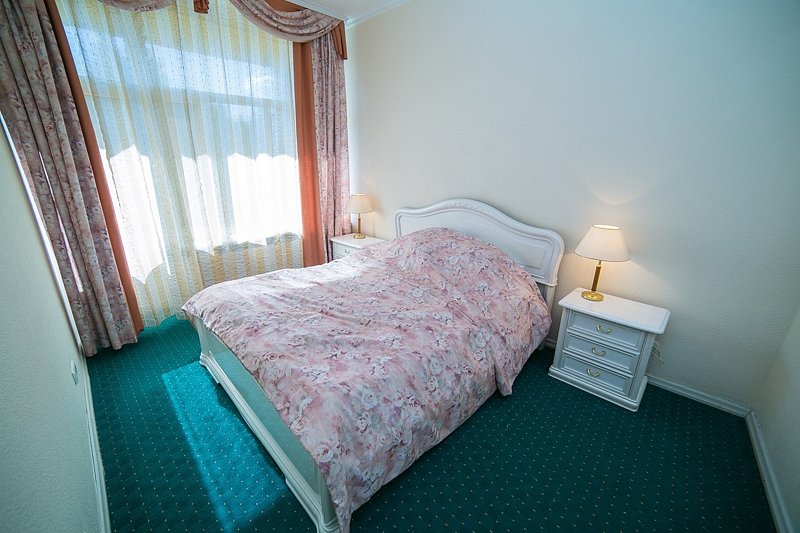 Просторный, двухкомнатный комфортабельный номер с красивым видом из окна, удобной двуспальной кроватью, системой климат-контроля, чайно-кофейным набором.