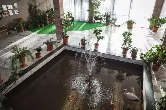 В зале много зеленых растений, цветов. В центре небольшой водоем с экзотическими рыбками. Также в зале в период проведения корпоративных мероприятий организуются кофе-паузы.