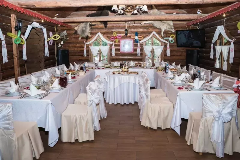 Расположена на берегу водоема с прекрасным видом на воду. По вашему желанию беседка может быть украшена шарами, цветами, декорирована тканью.