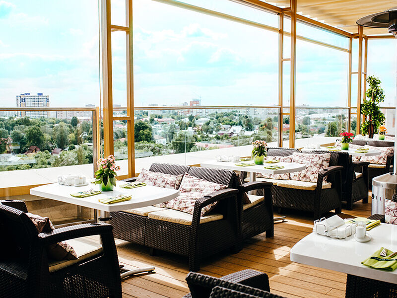 В отеле работает ресторан, где гости могут заказать себе блюда европейской и русской кухни. В теплое время года открыто летнее кафе. В распоряжении отдыхающих банный комплекс с русской парной, финской сауной и крытым бассейном на крыше здания. Всем гостям доступны услуги прачечной, беспроводной интернет, перед корпусом организована автостоянка.