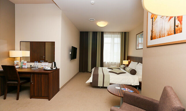 Путешествие с семьейПолагаю, лучшее в ИвановоПутешествовали по Золотому кольцу, остановились на 2 ночи. Жили в люксе с сауной на 8 этаже (2 вечера грелся в ней, приятная опция). Номер чистый, очень интересный дизайн - смесь американского кантри стиля, русской избы и европейской современности, все необходимые предметы присутствуют, горничные и ресепшен отзывчивые и работают оперативно.