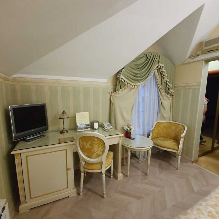 В номере вас будут ждать телевизор и халат. Оснащение зависит от выбранной категории номера.