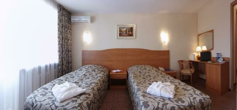 Девятиэтажное здание отеля, оснащенное лифтом, включает в себя 140 номеров различной категории комфорта от Стандарта до Супериор. Одноместные и двухместные номера укомплектованы необходимой мебелью и техникой. В каждом подключена сеть wi-fi есть санузел с душем или ванной.