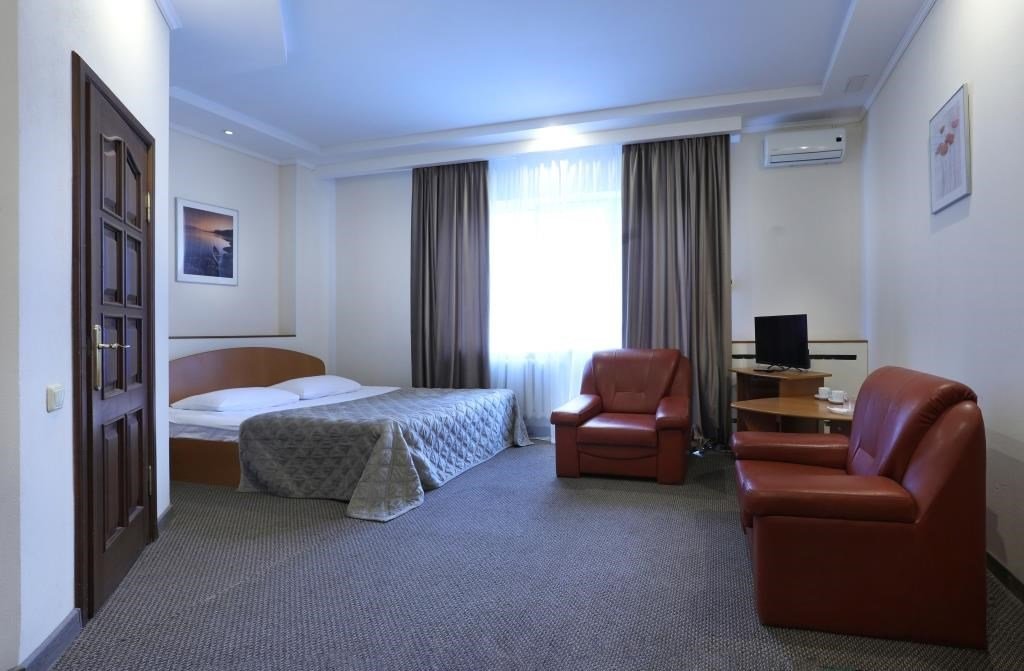 Просторный однокомнатный номер площадью 37, 5 м2 с одной двуспальной или двумя односпальными кроватями.