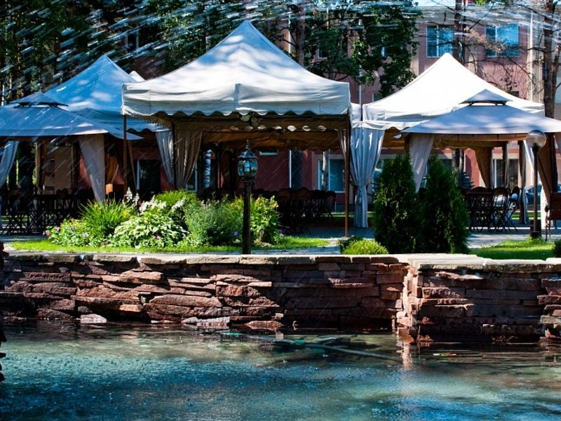 Летний ресторан вместимостью до 170 человек создан для тех, кто любит комфортно отдыхать на свежем воздухе. Настоящий итальянский шатер, расположенный на площадке с живописным ландшафтом открыт для гостей с мая по сентябрь. «Шатер» - уникальное место для проведения незабываемого свадебного торжества.