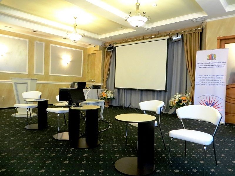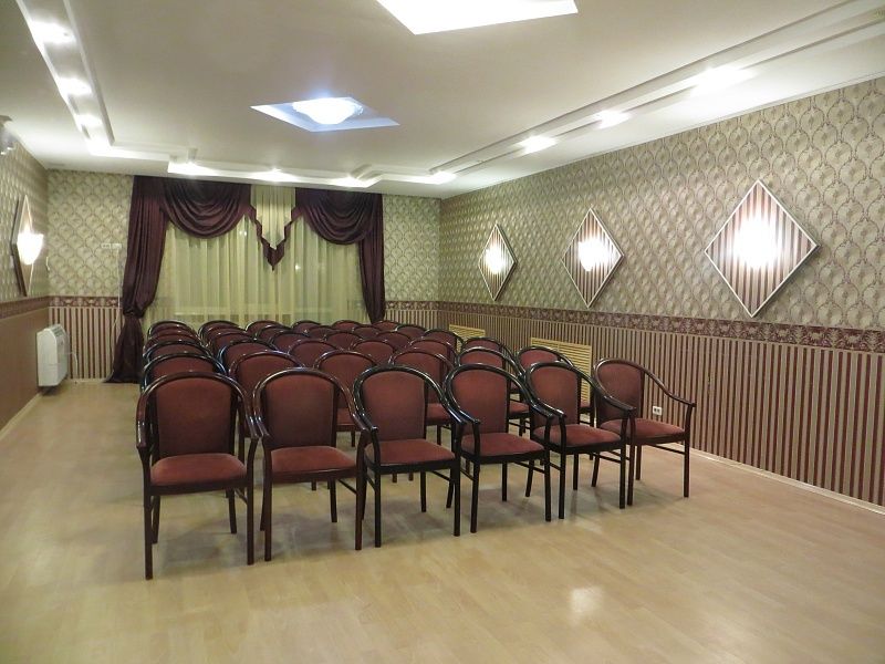Малый зал, площадью 55 м2 рассчитан на 30 человек. Интерьер выполнен в классическом стиле – торжественный и элегантный, в зале хорошо регулируемое освещение, кондиционер.