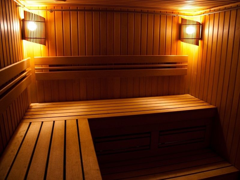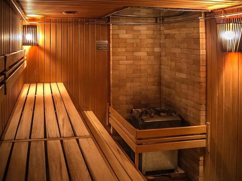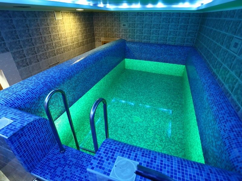 Бассейн с подсветкой воды 4,5 х 2,5 м, глубина 1,5 м, финская парная, комната отдыха, душевые, санузел, раздевалка, фен.